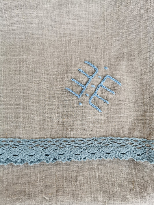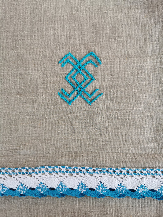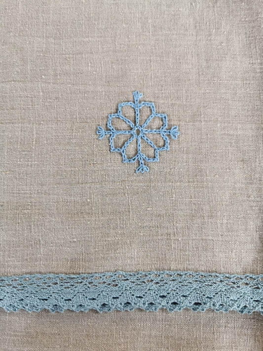 Lina dvielis mazais 31x100 gaiši zila mežģīne izšuvums ŪSIŅŠ