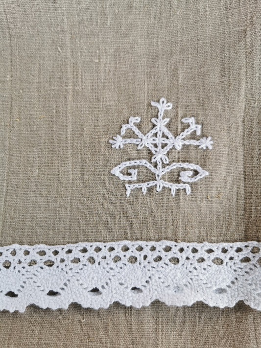 Lina dvielis mazais 31x100 balta mežģīne izšuvums AUSTRAS KOKS