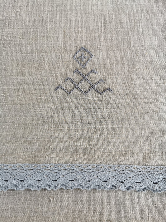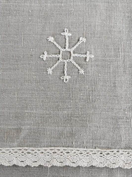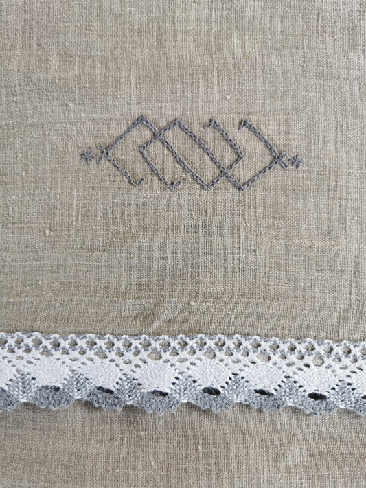 Lina dvielis lielais 95x150 pelēki balta mežģīne izšuvums ZAKTIS