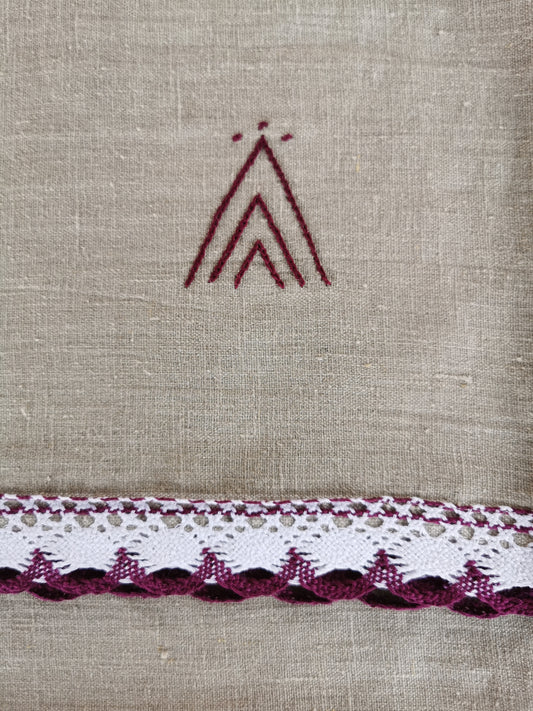 Lina dvielis lielais 95x150 violeti balta mežģīne izšuvums DIEVA ZĪME