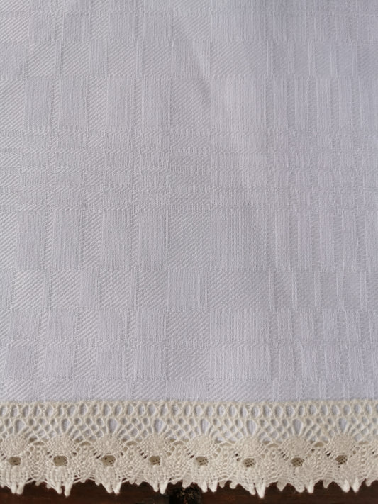 Lina dvielis balts ar dreļļu rakstu 46x158 un mežģīne
