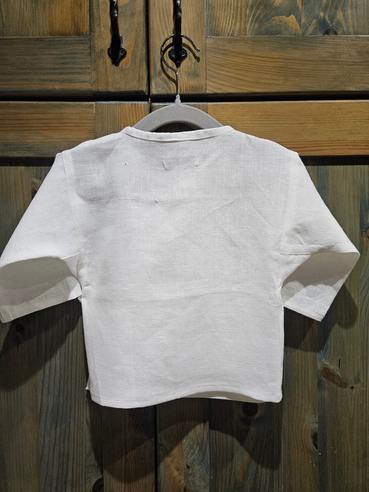 Zēnu lina krekls balts etnogrāfiska piegriezuma ar pārliekamu priekšpusi 62-68 izm