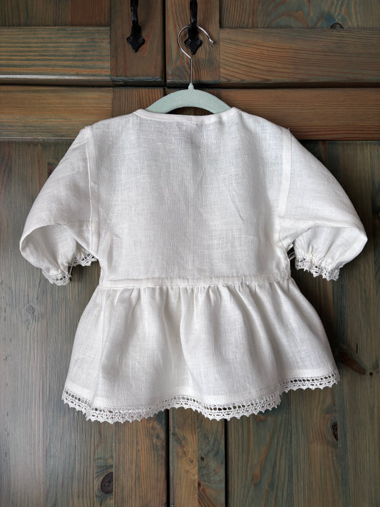 Meiteņu lina krekls balts etnogrāfiska piegriezuma ar mežģīnēm 122-164 izm