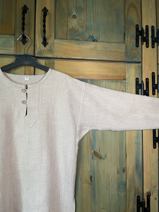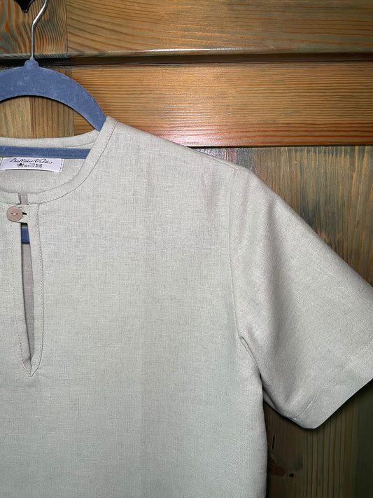 Krāsaini lina krekli un bikses zēniem. Izstrādājuma krāsa var atšķirties no reālā krāsu toņa, jo mūsu krāsu uztveri ietekmē materiāla virsma, atspīdums, apgaismojums un citi faktori.