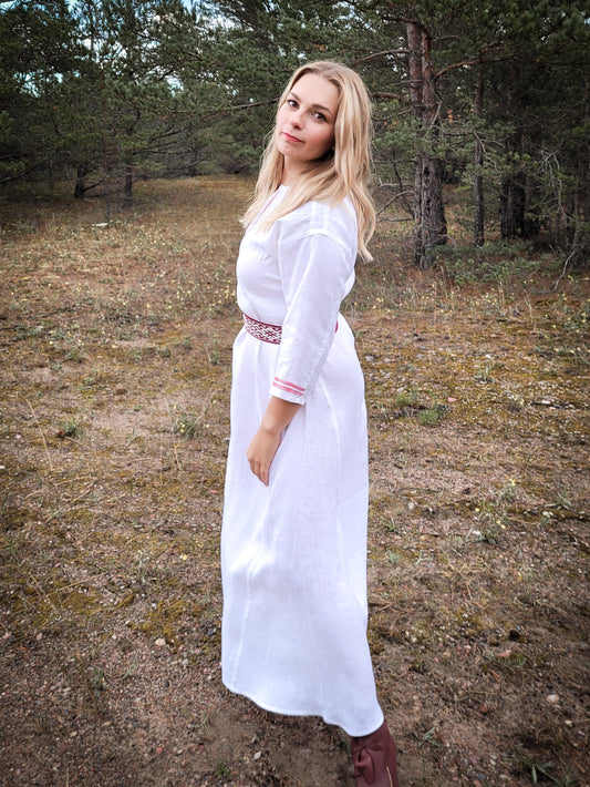 Sieviešu etnogrāfiskais garais krekls (kleita) lina balta 42 izm ar garām rokām