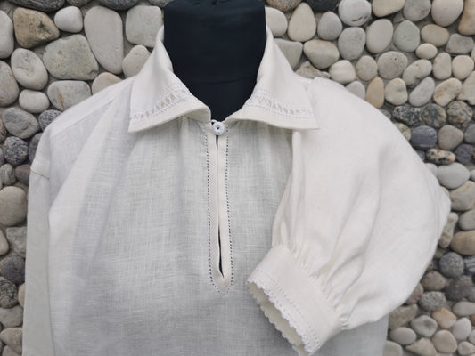 Sieviešu lina krekls balts ar izšuvumu 38 izm