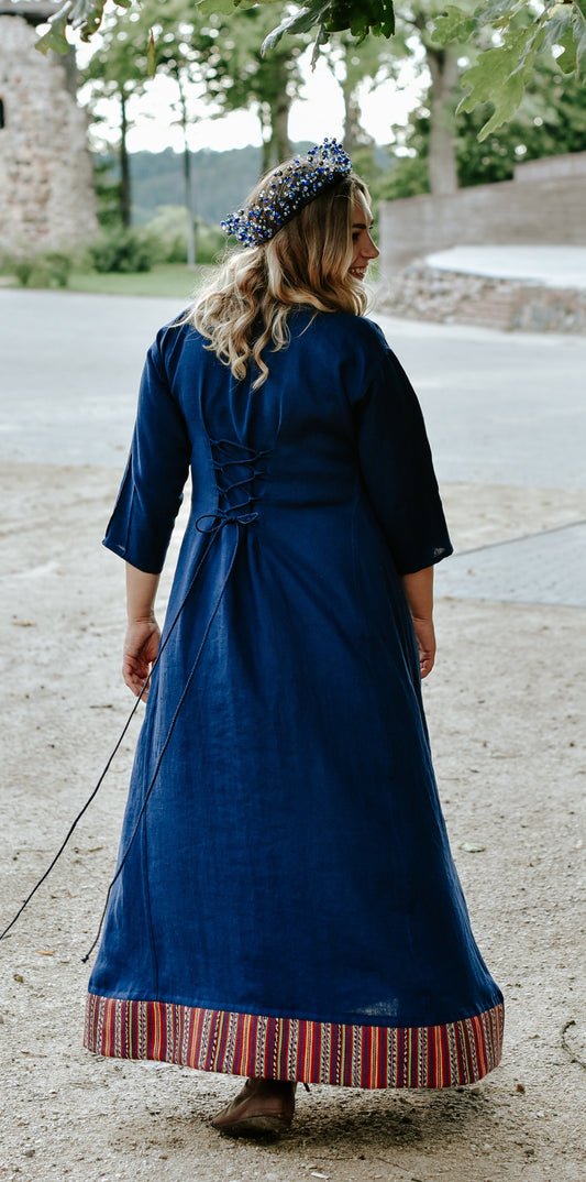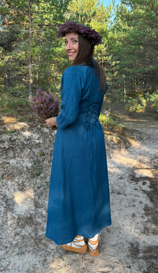 Sieviešu kleita lina tumši zila 42 izm