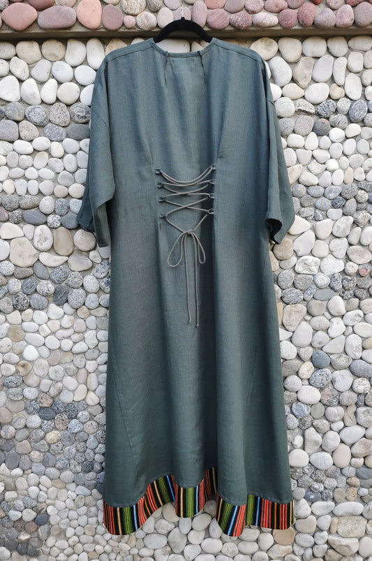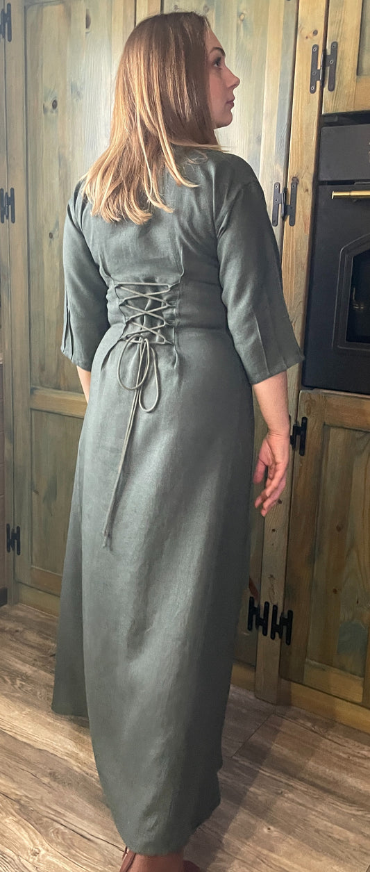 Sieviešu kleita lina zili zaļa 38-44 izm