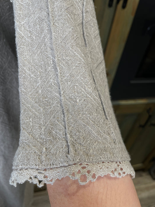 Sieviešu etnogrāfiskais pusgarais lina krekls pelēks ar faktūru 40 izm