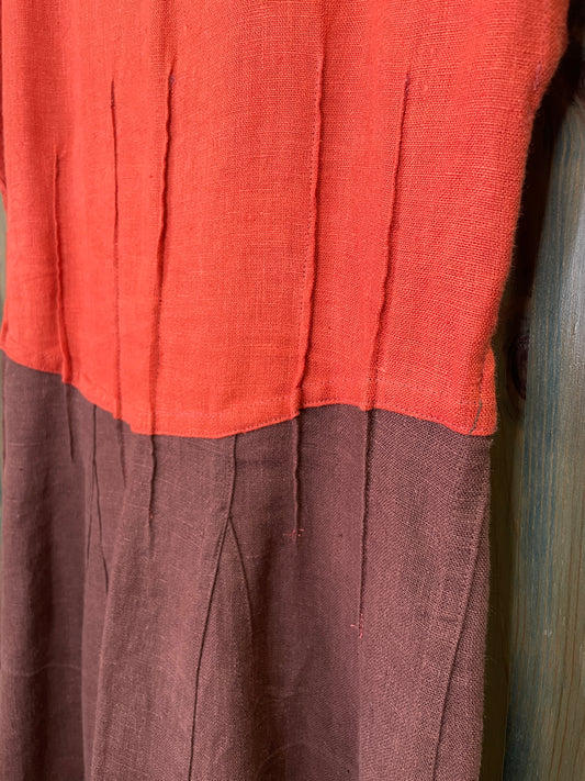 Sieviešu kleita lina orandža ar brūnu 38 izm