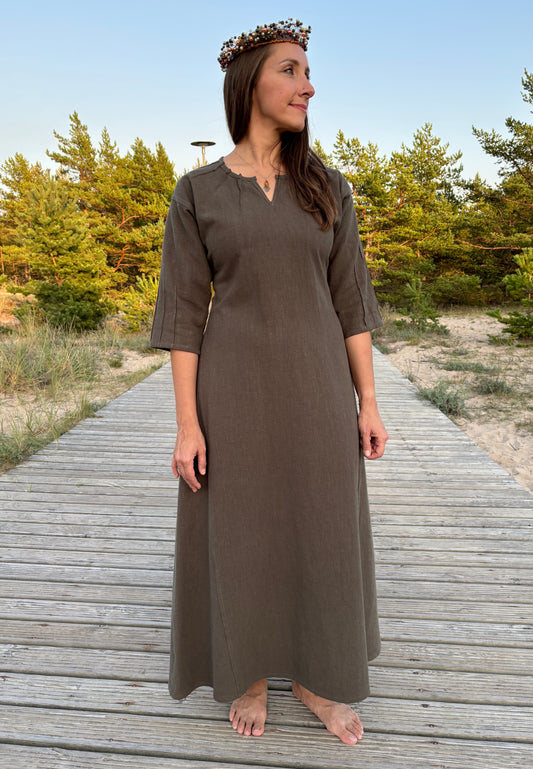 Krāsainas lina kleitas sievietēm. Izstrādājuma krāsa var atšķirties no reālā krāsu toņa, jo mūsu krāsu uztveri ietekmē materiāla virsma, atspīdums, apgaismojums un citi faktori.