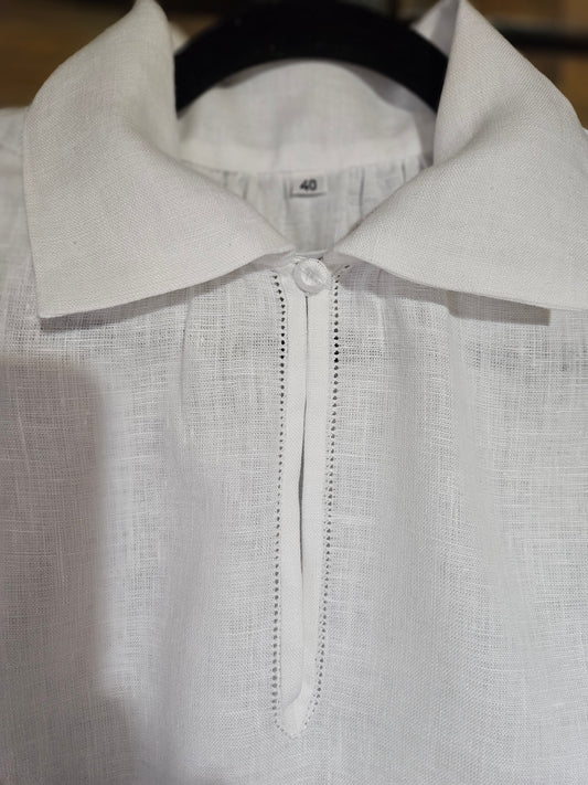 Sieviešu tautiskais pusgarais lina krekls balts izšūts 40-46 izm