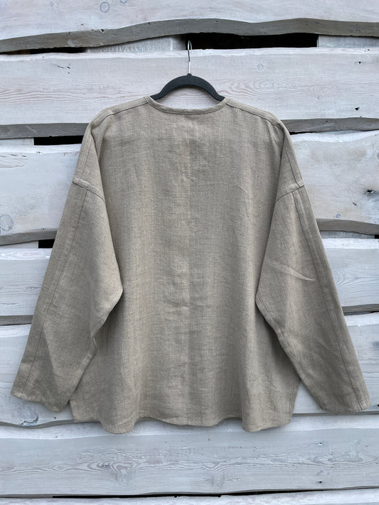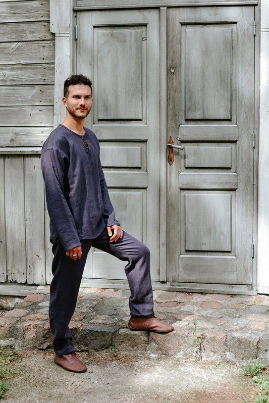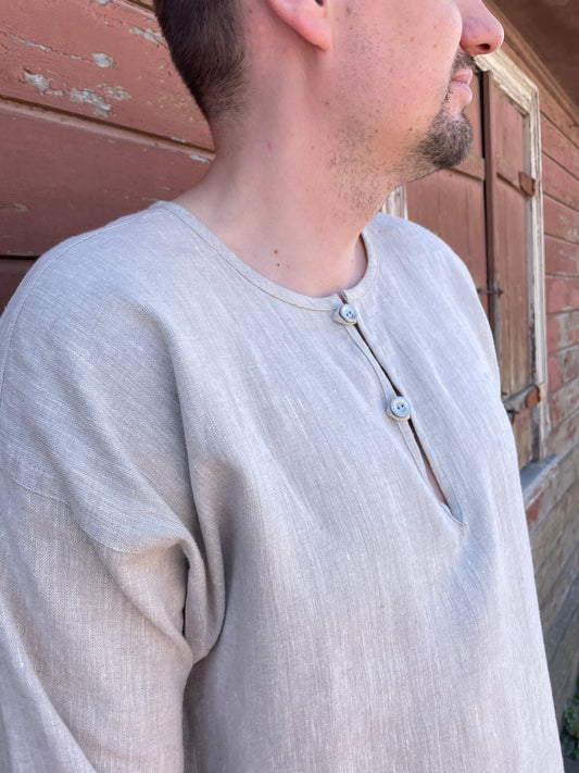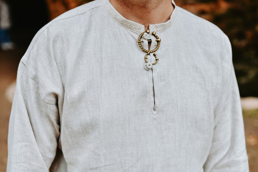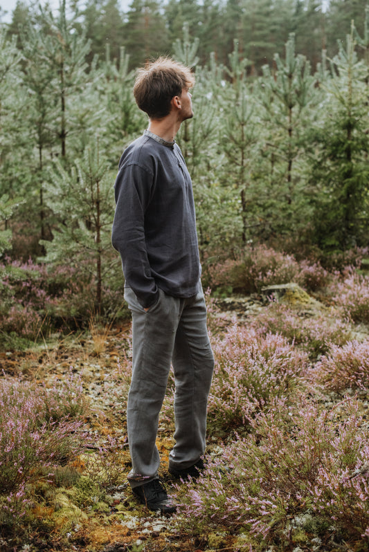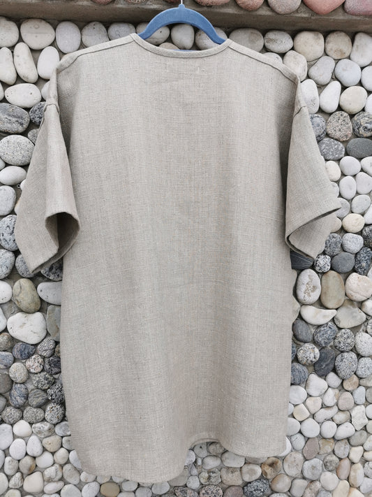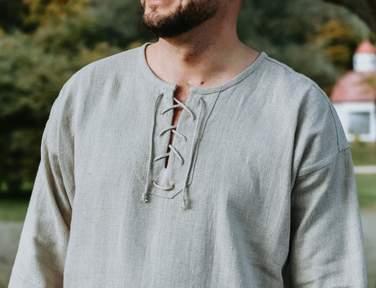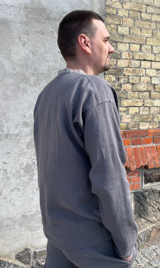 Vīriešu krekls lina pelēks ar lina auklu M-XL-XXL