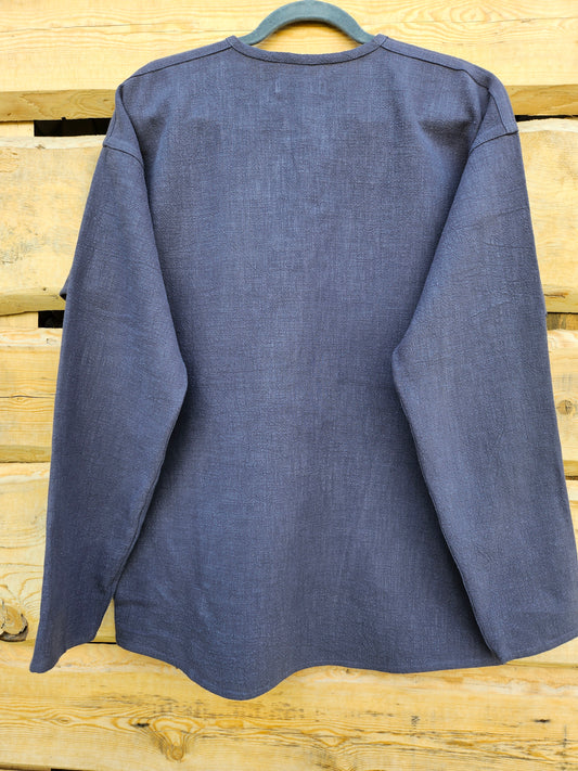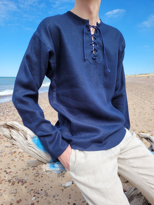 Vīriešu krekls lina tumši zils ar lina auklu L