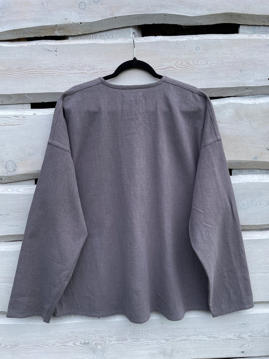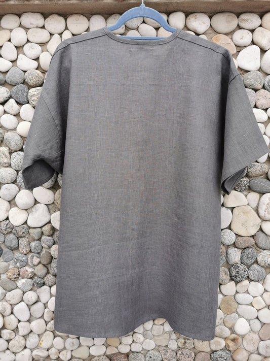 Vīriešu krekls lina tumši pelēks ar lina auklu XXXL