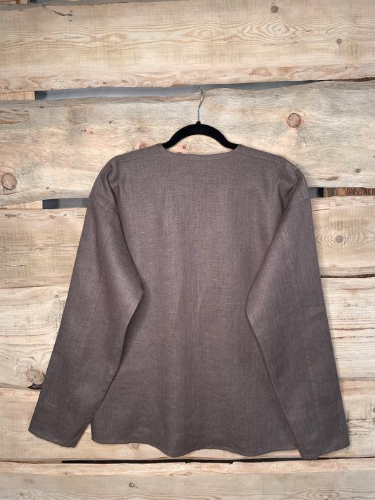 Vīriešu krekls lina brūns ar lina auklu M-L-XXL