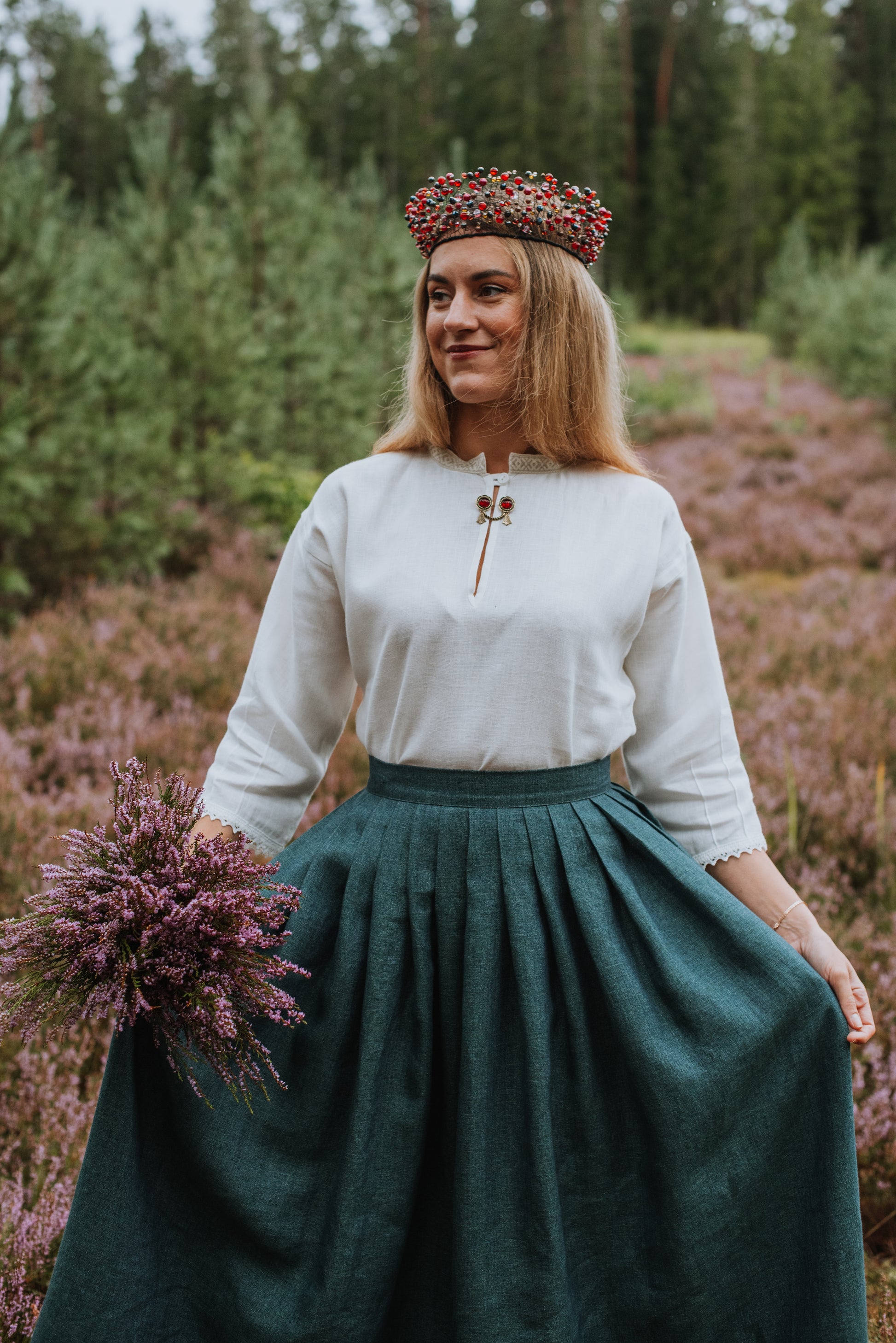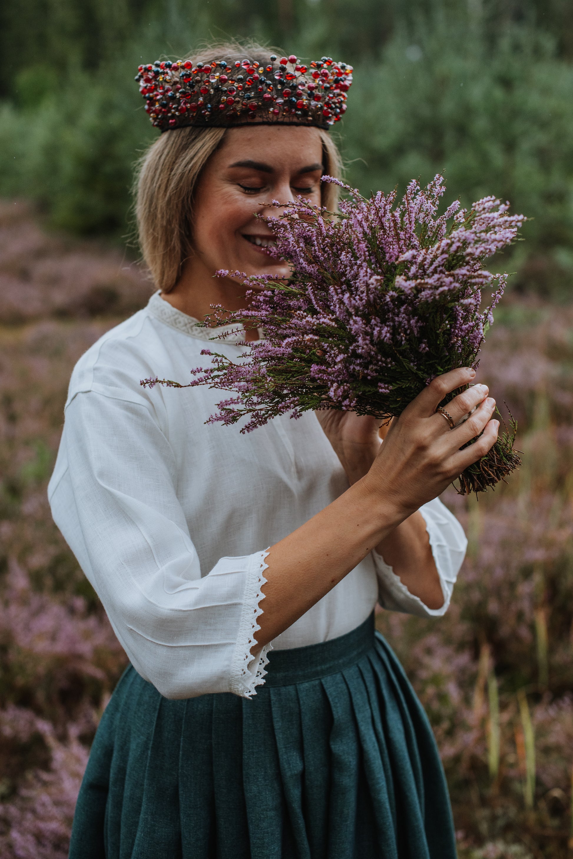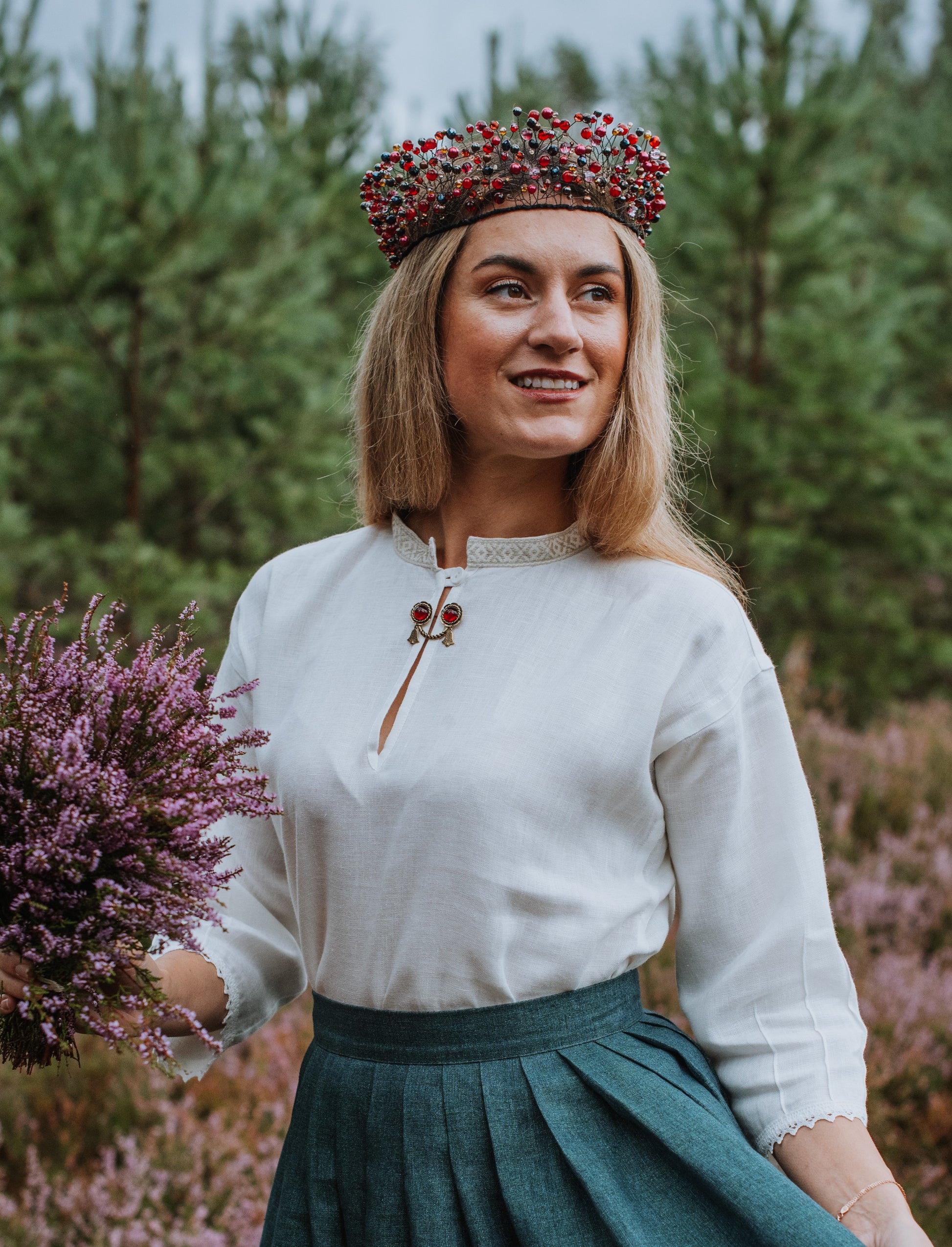 Materiāls - 100% lins mīkstināts (krekls), 100% lina (mežģīne).