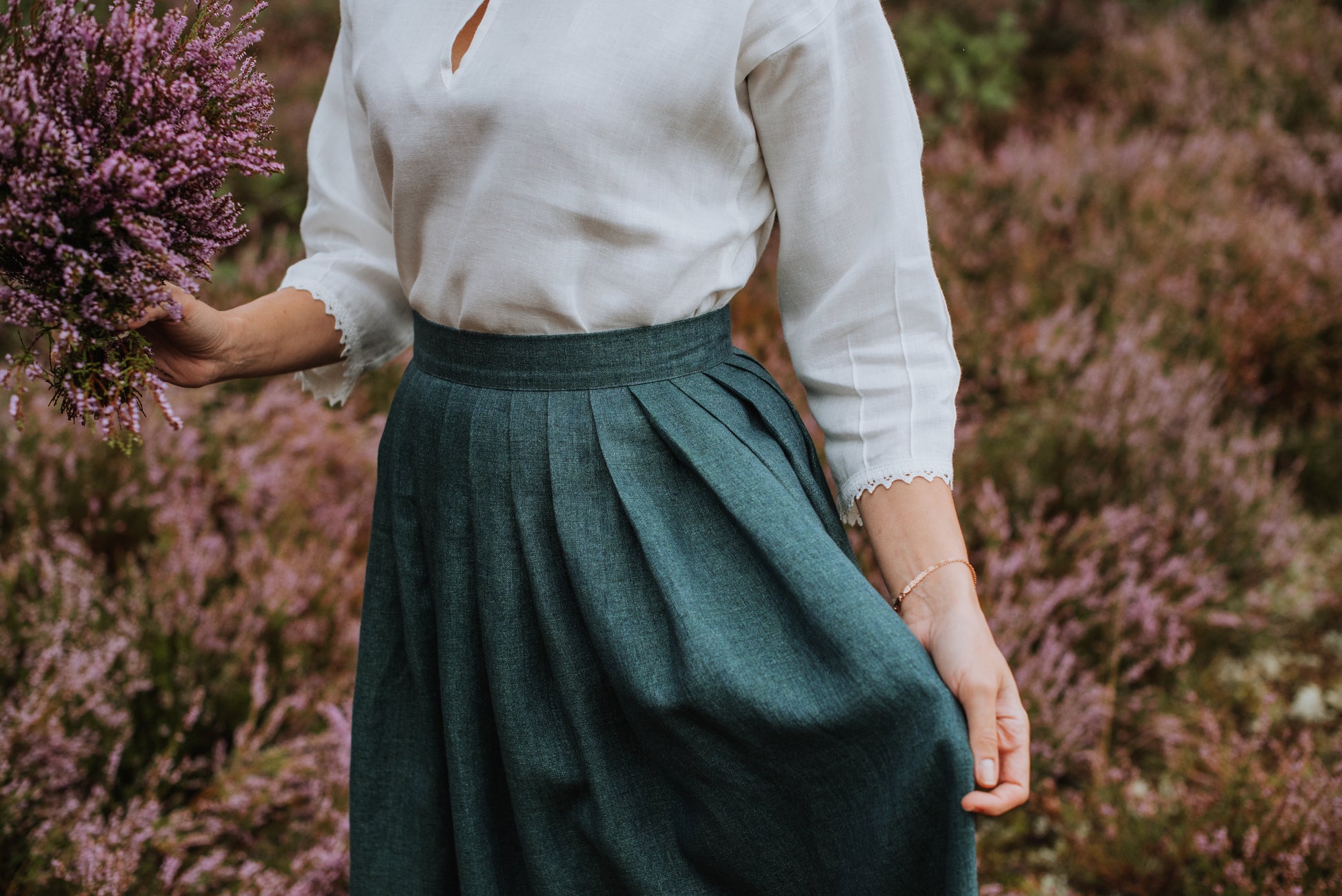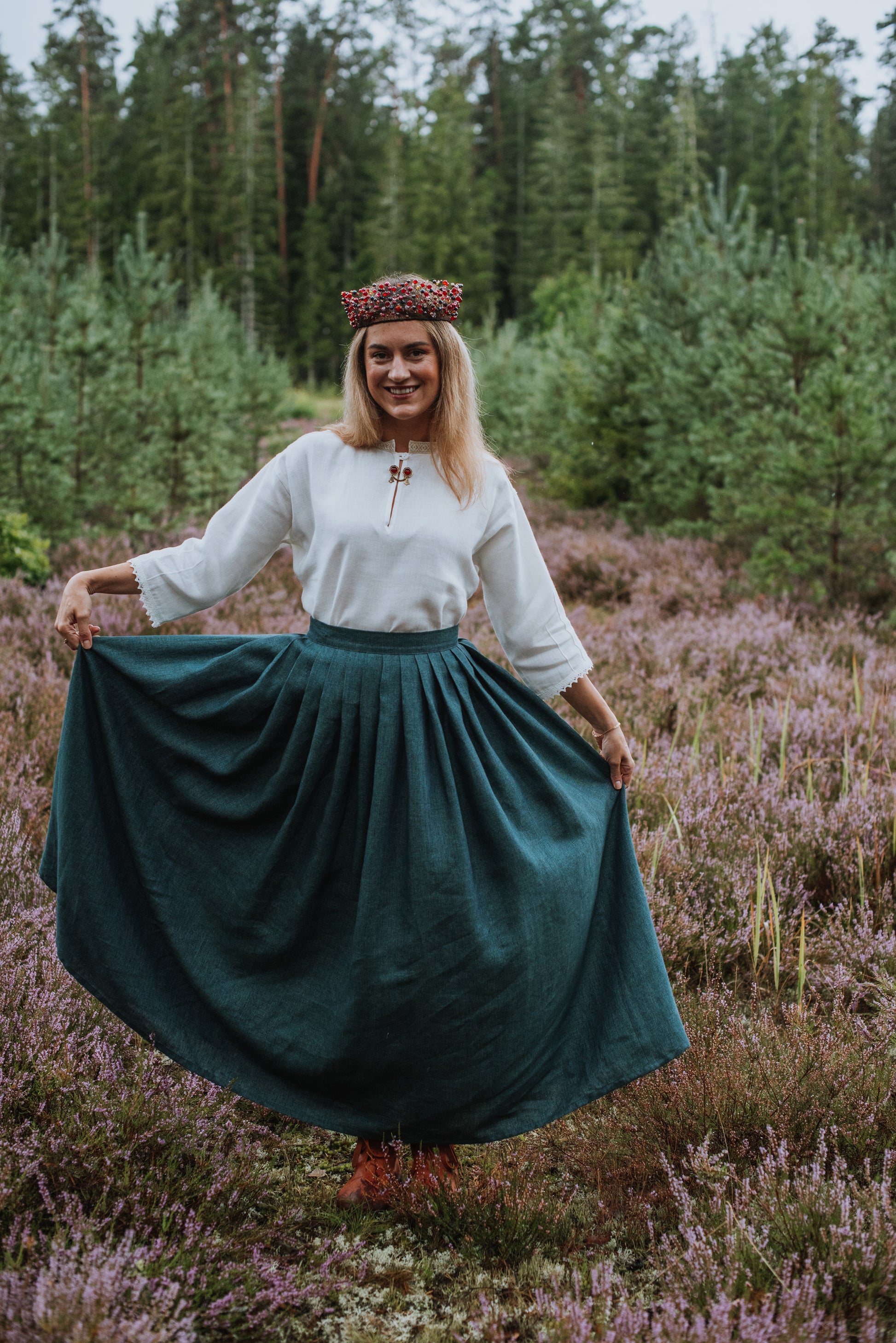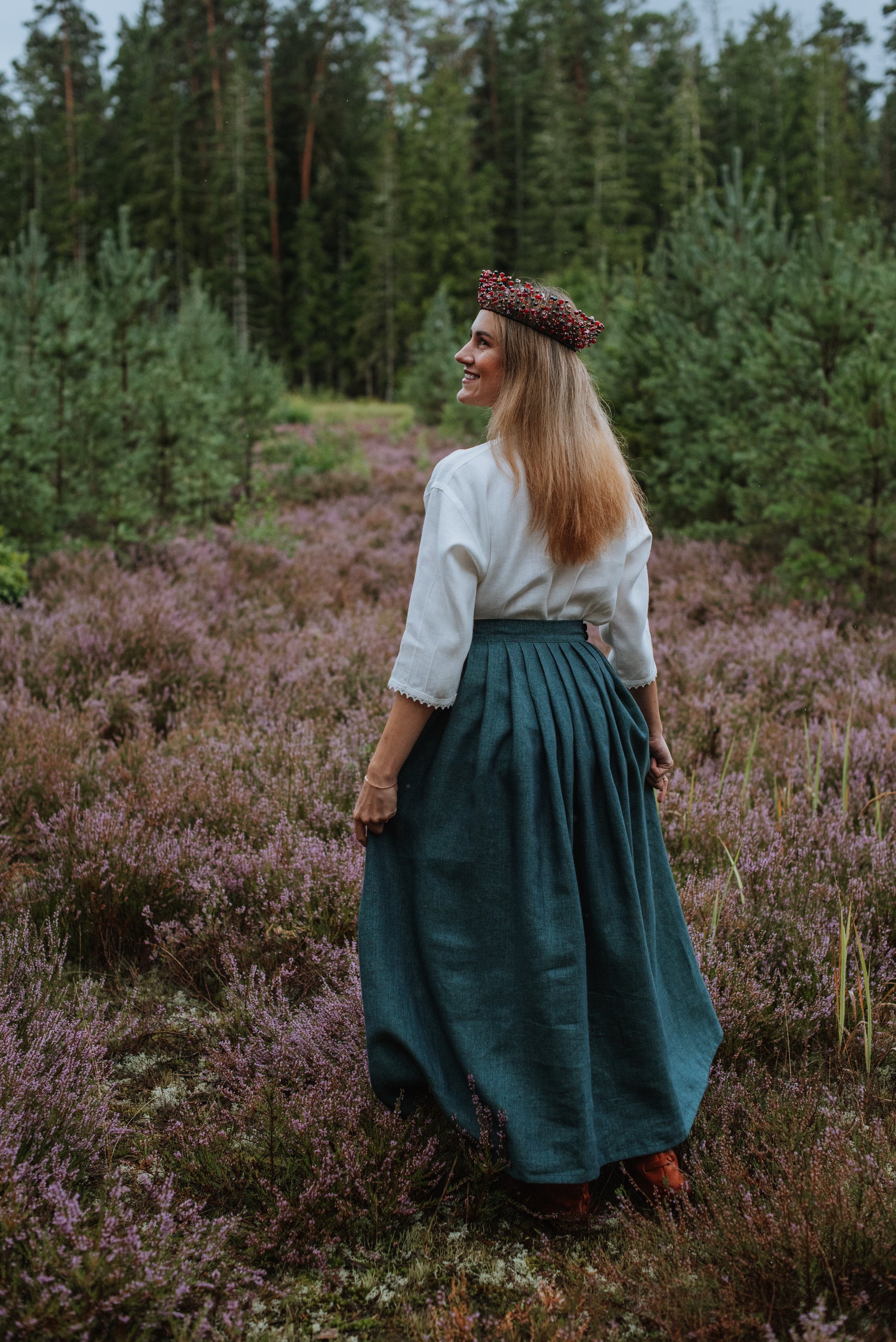 Materiāls - 100% lins mīkstināts (krekls), 100% lina (mežģīne).