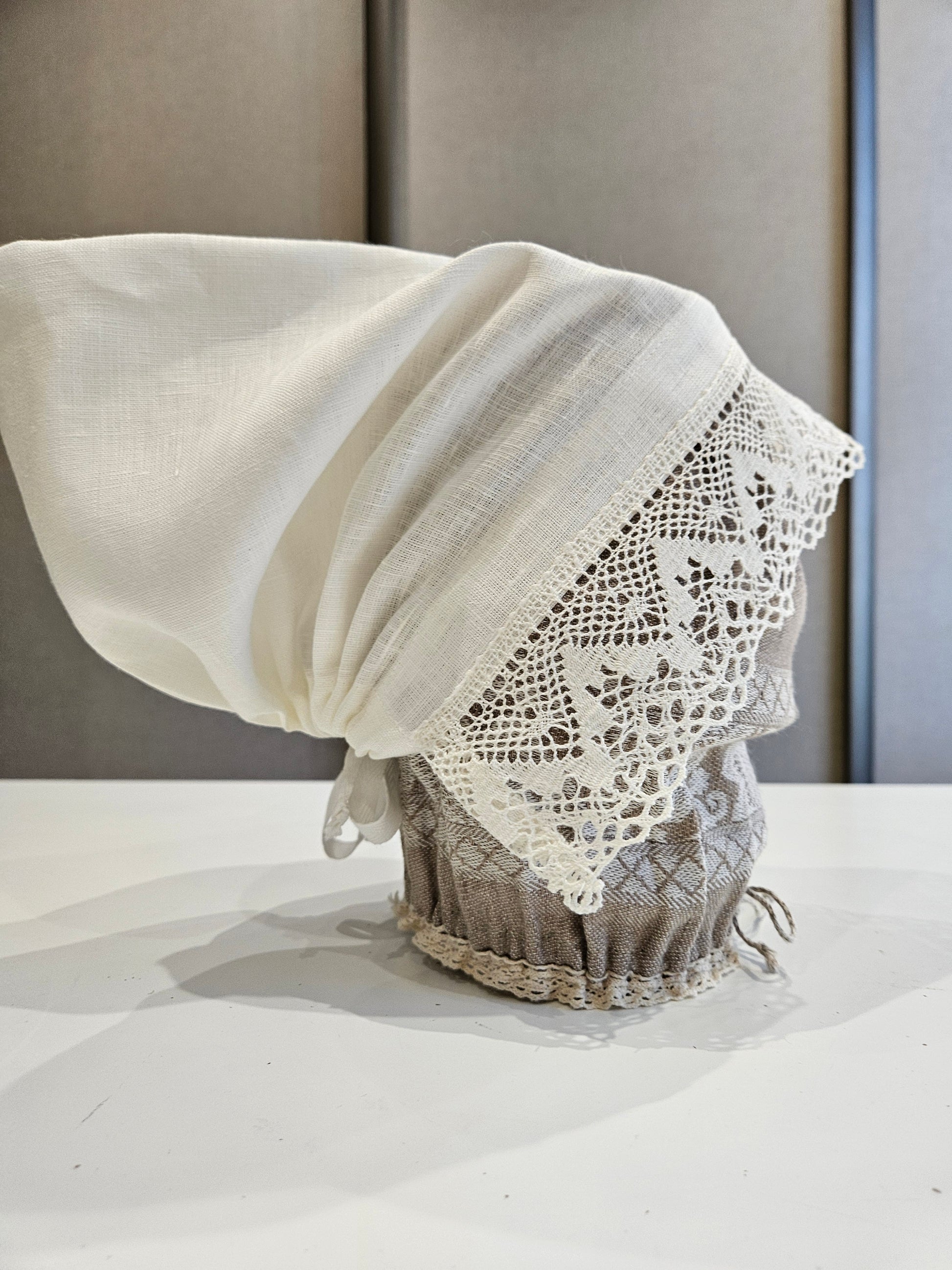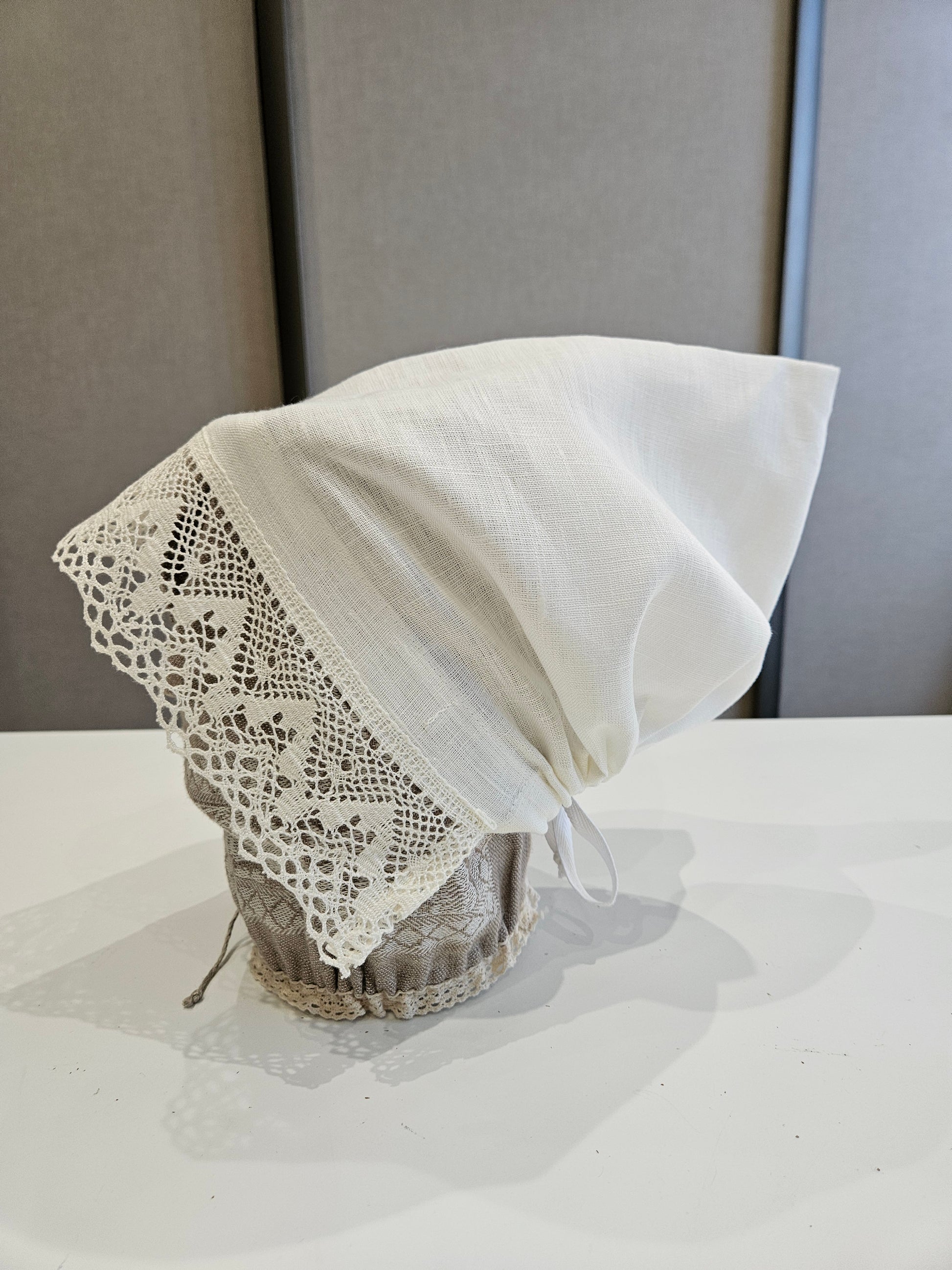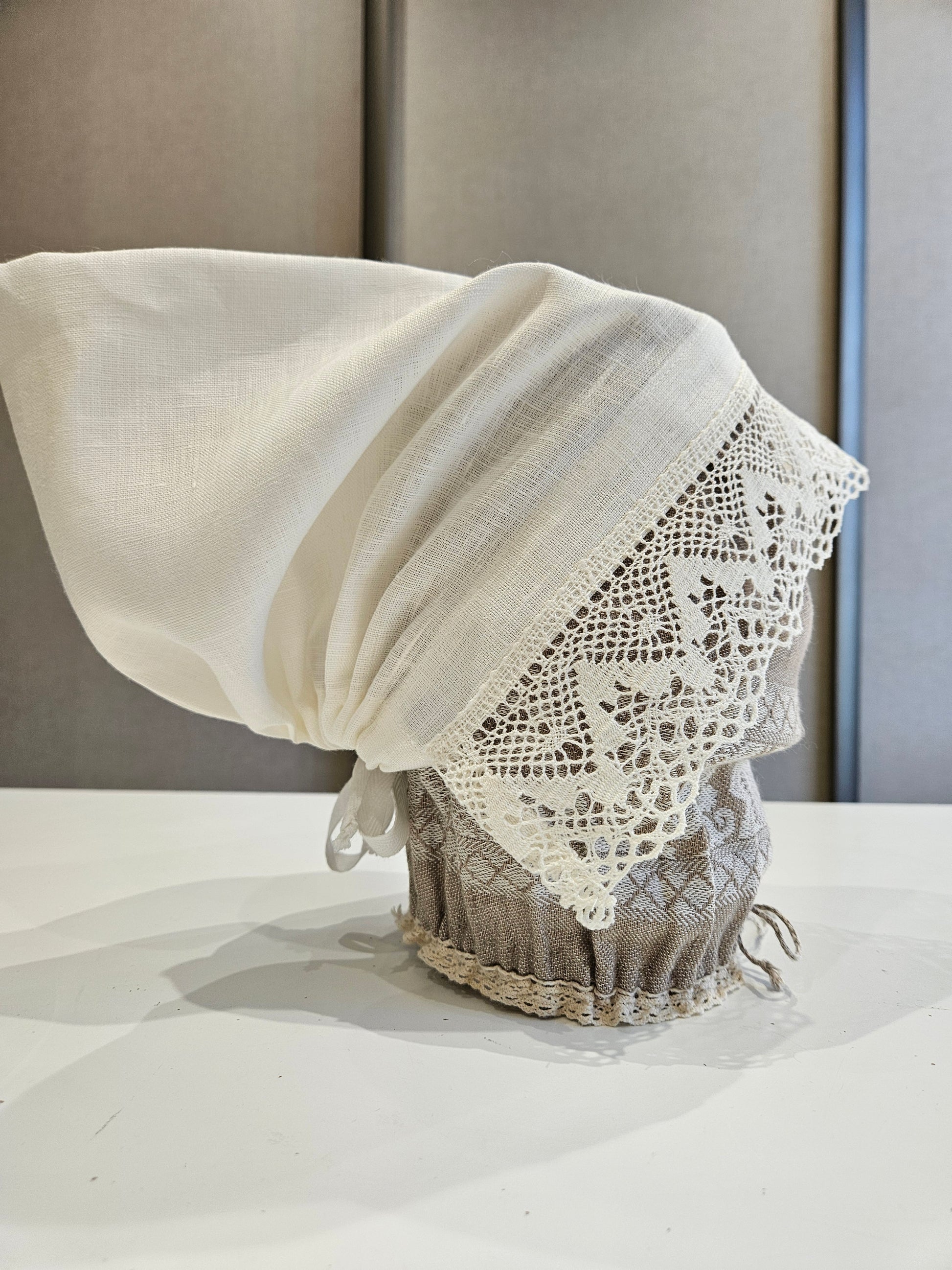 Vidzemes sievu aube - troņa cepure balta, izmērs regulējams ar sasienamu kokvilnas lenti.