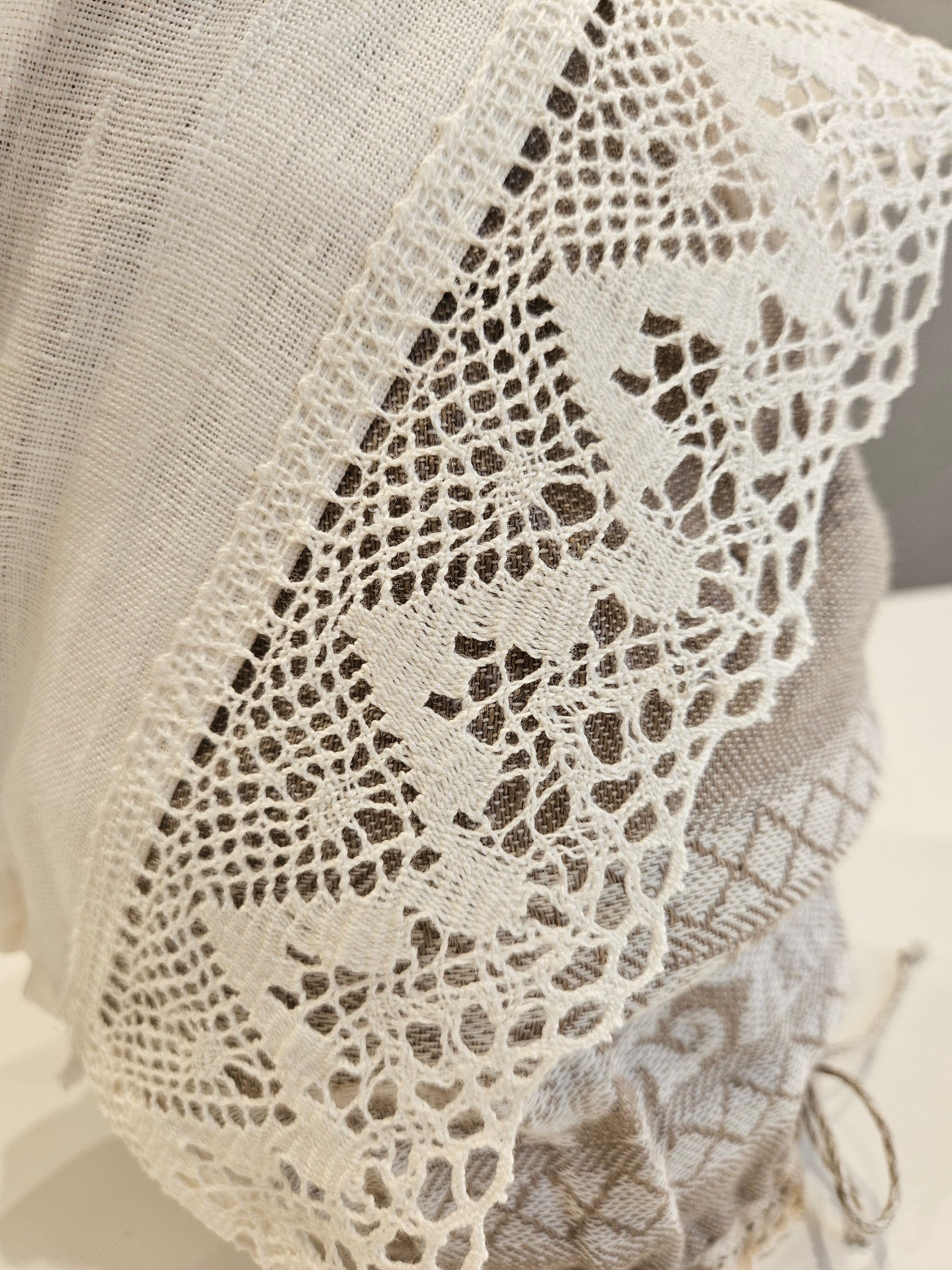 Materiāls - aube 100% lins, mežģīne 100% lins.