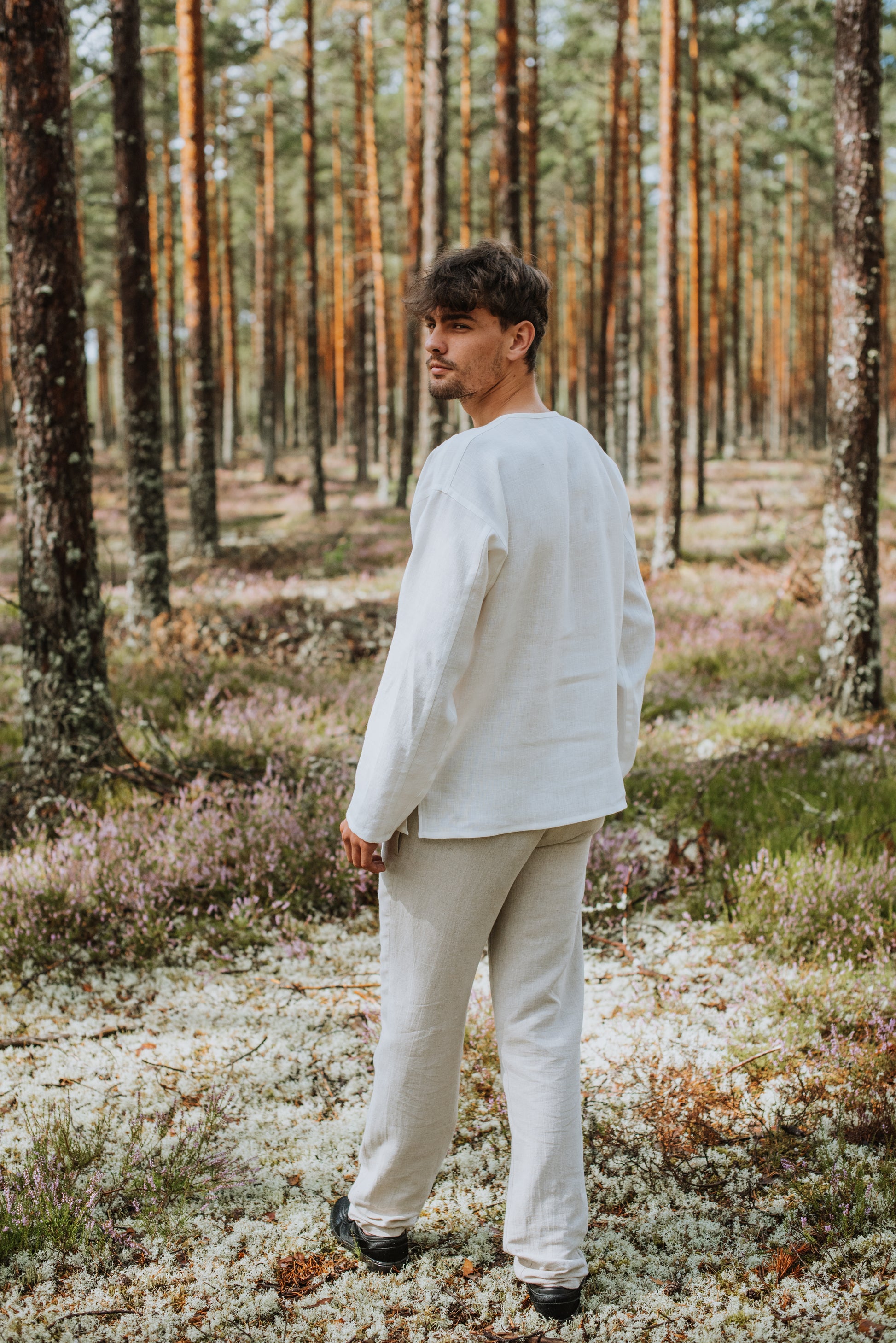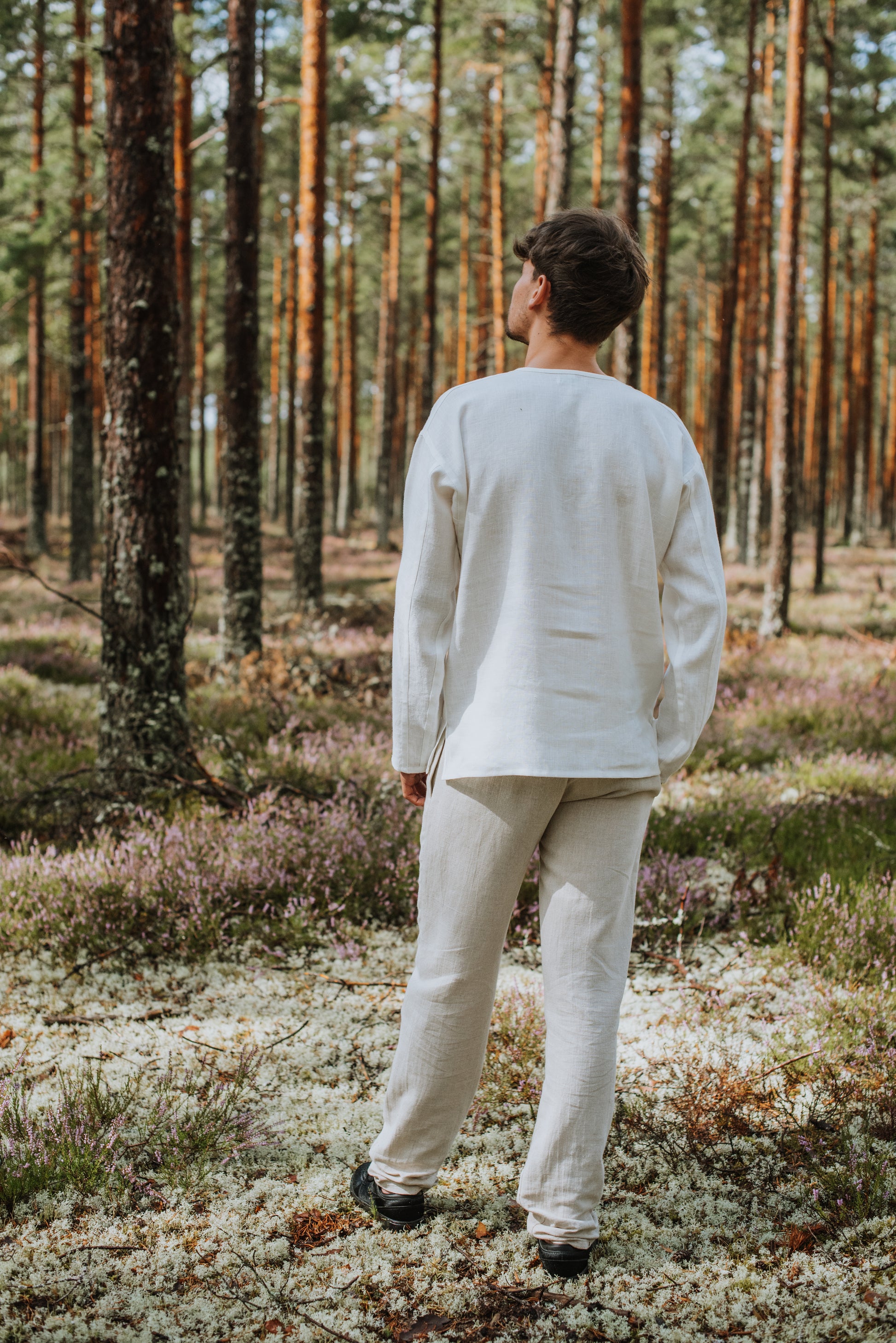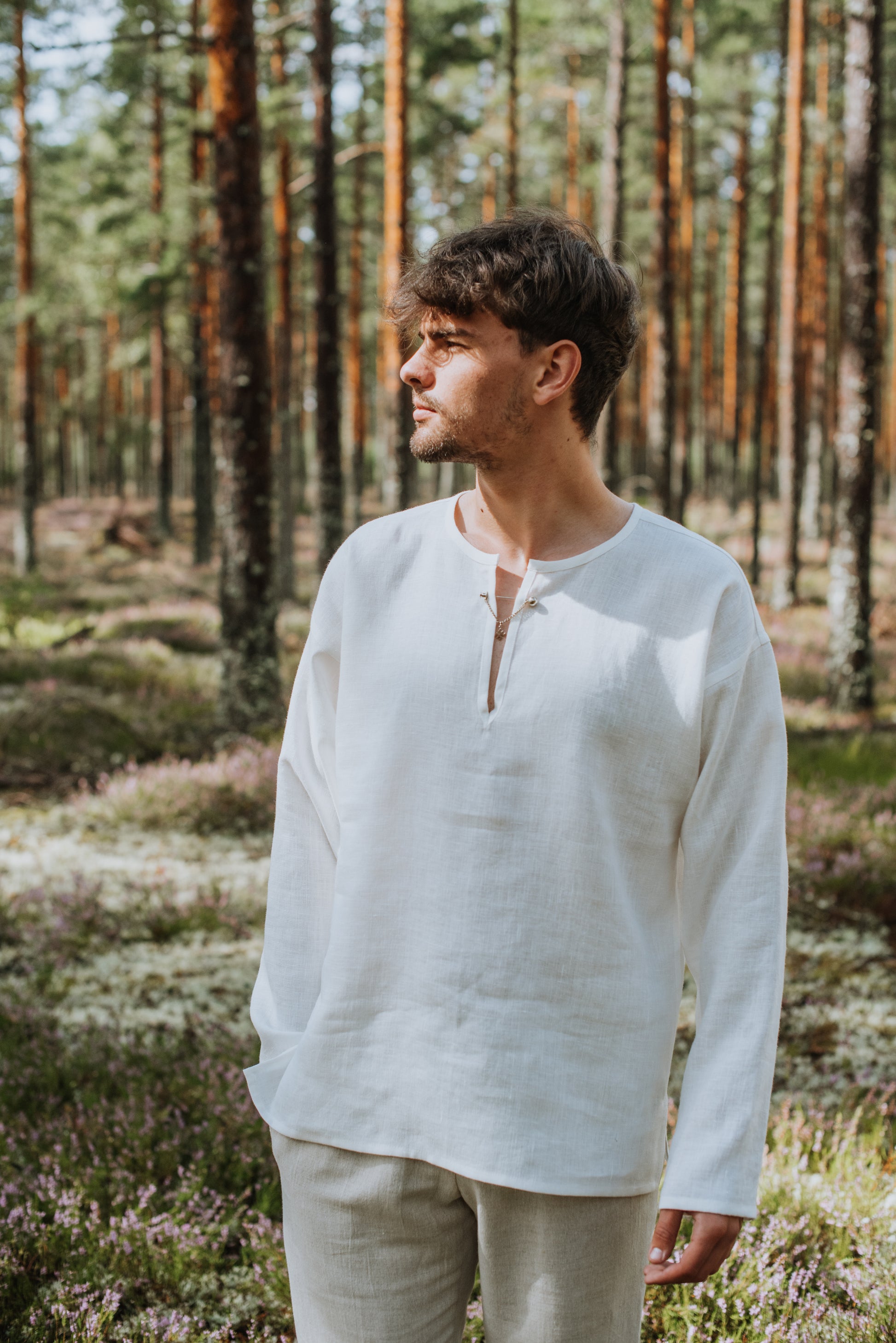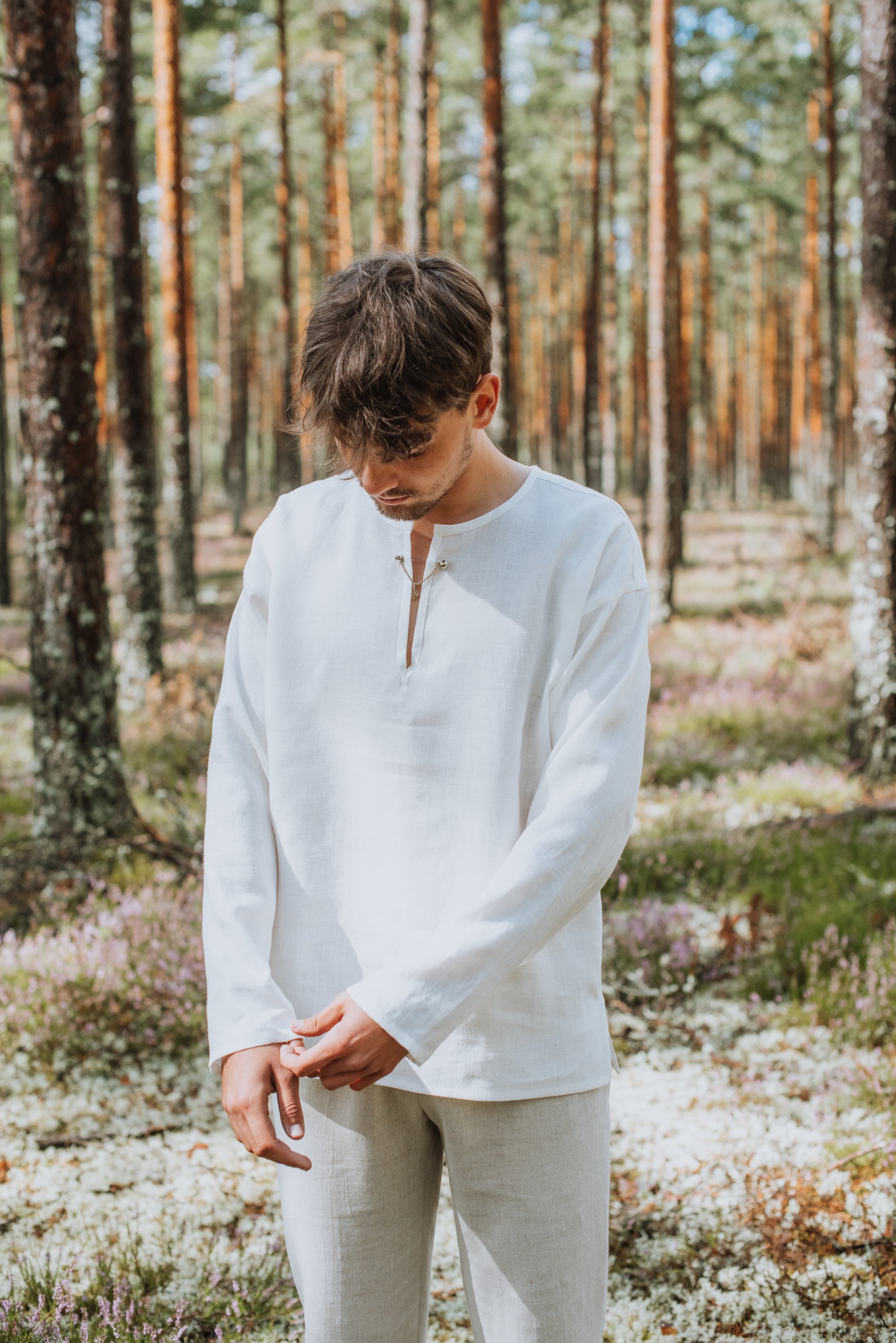 Vīriešu krekls etnogrāfiska piegriezuma ar garām piedurknēm.
