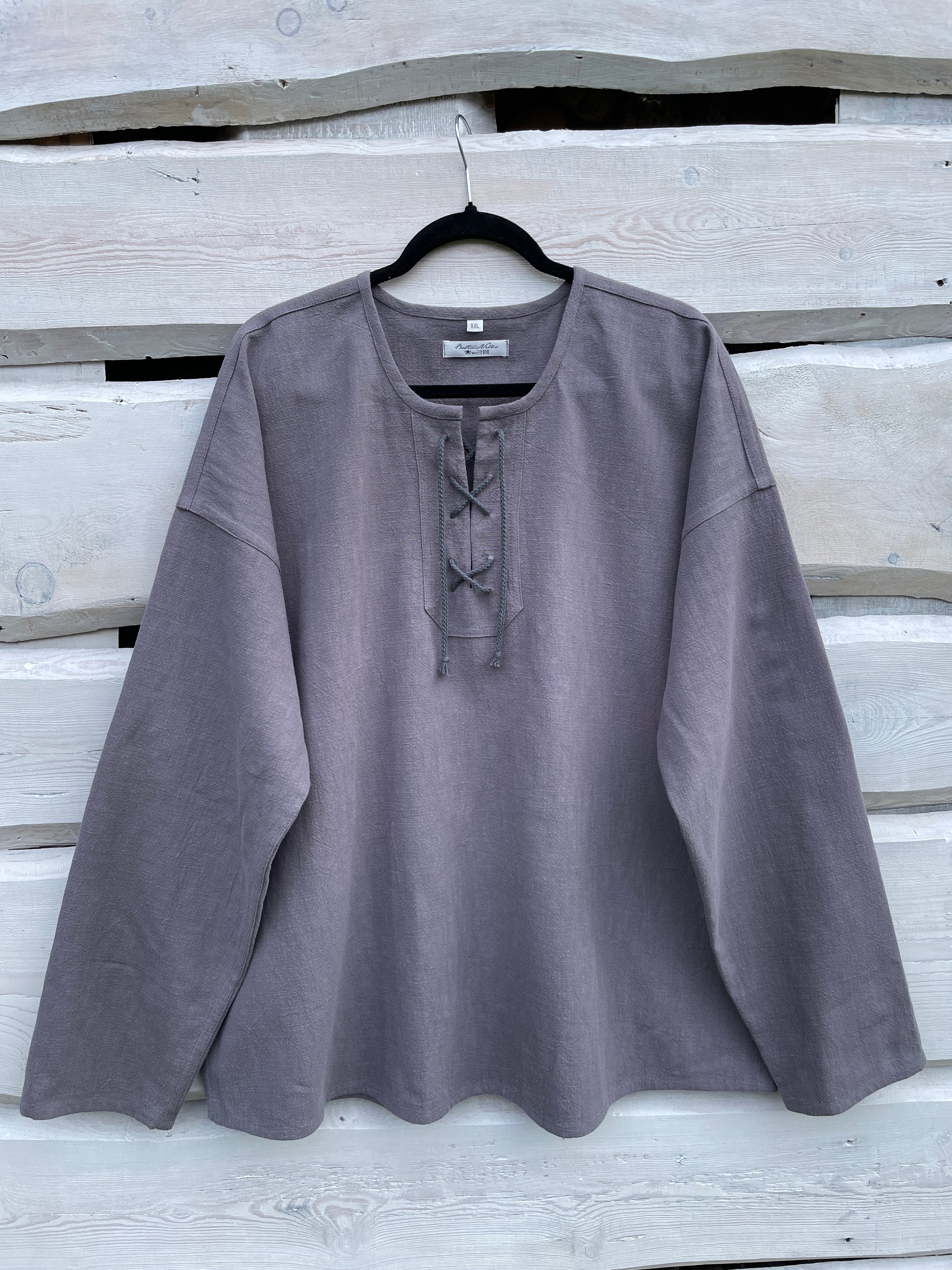Vīriešu krekls ramia vidēji tumši pelēks ar lina auklu XXL