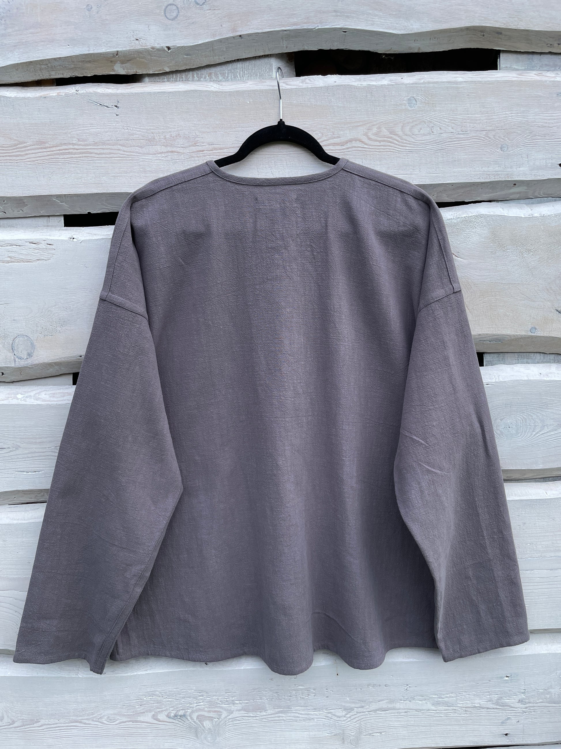 Vīriešu krekls tumši pelēks zilgans etnogrāfiska piegriezuma ar garām piedurknēm.