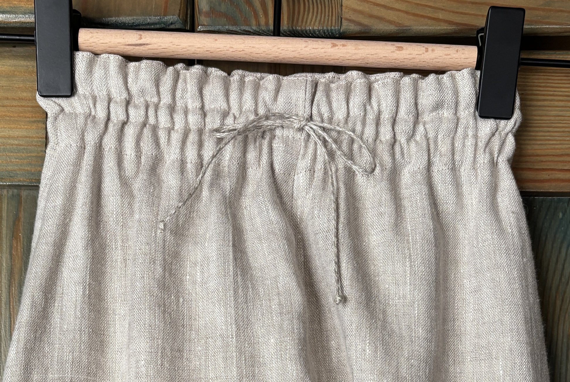 Jostas vieta regulējama ar gumiju un lina auklu.