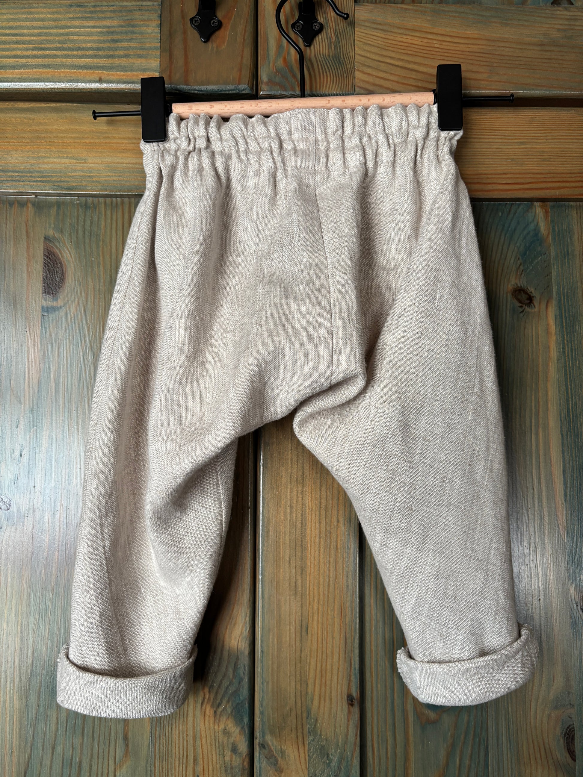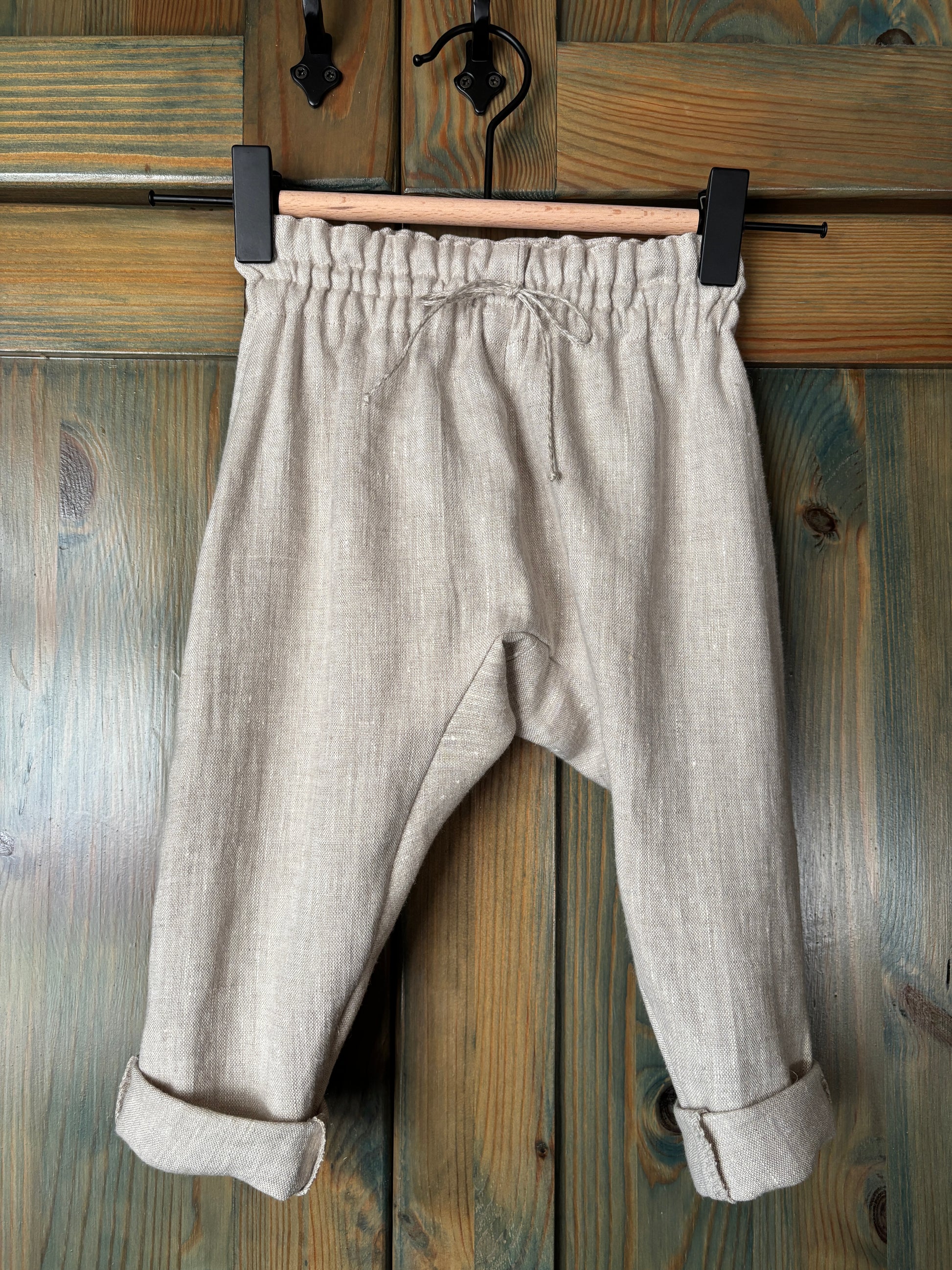 Zēnu lina bikses gaiši pelēkas melanža harēmtipa 62-98 izm