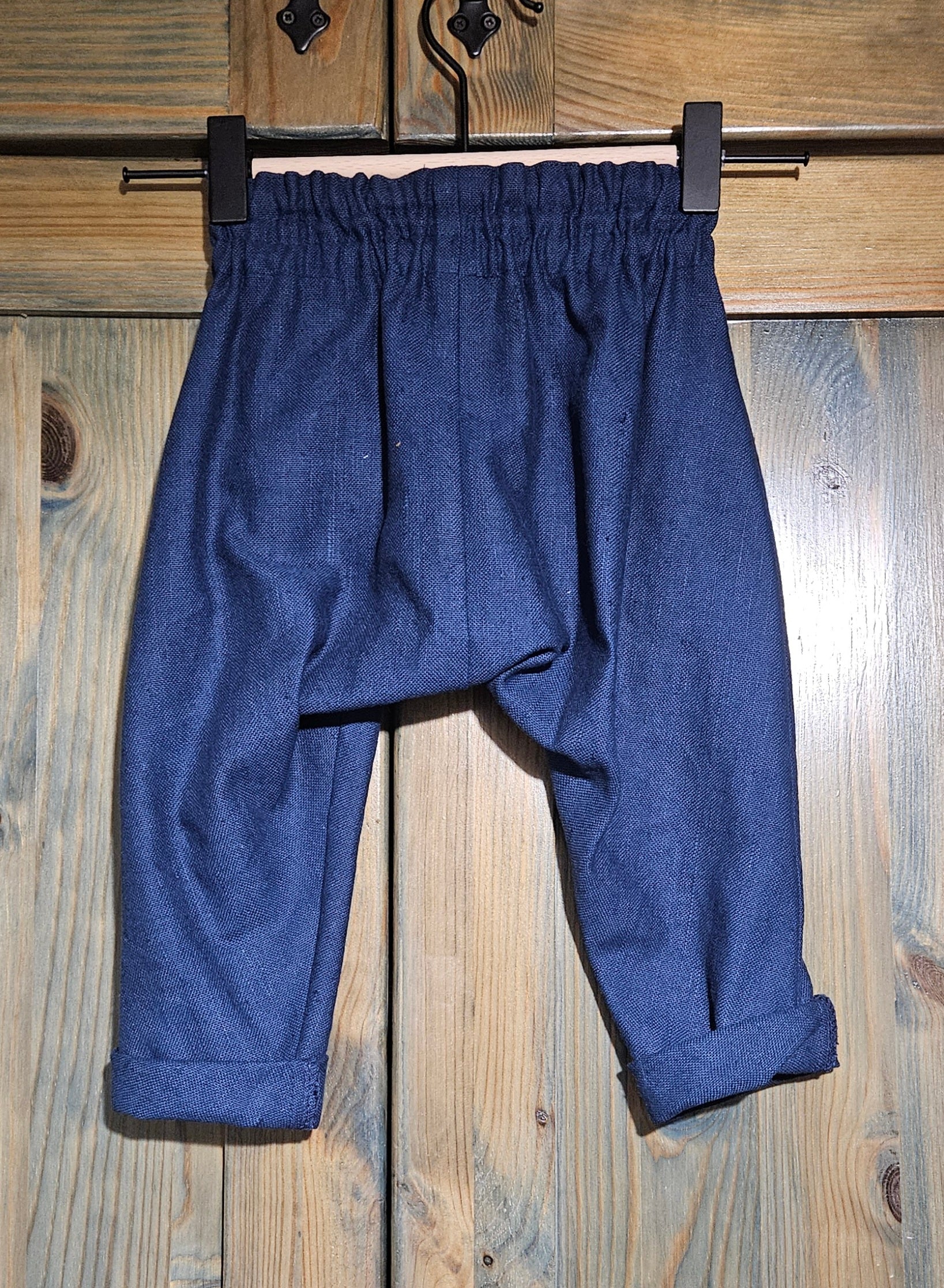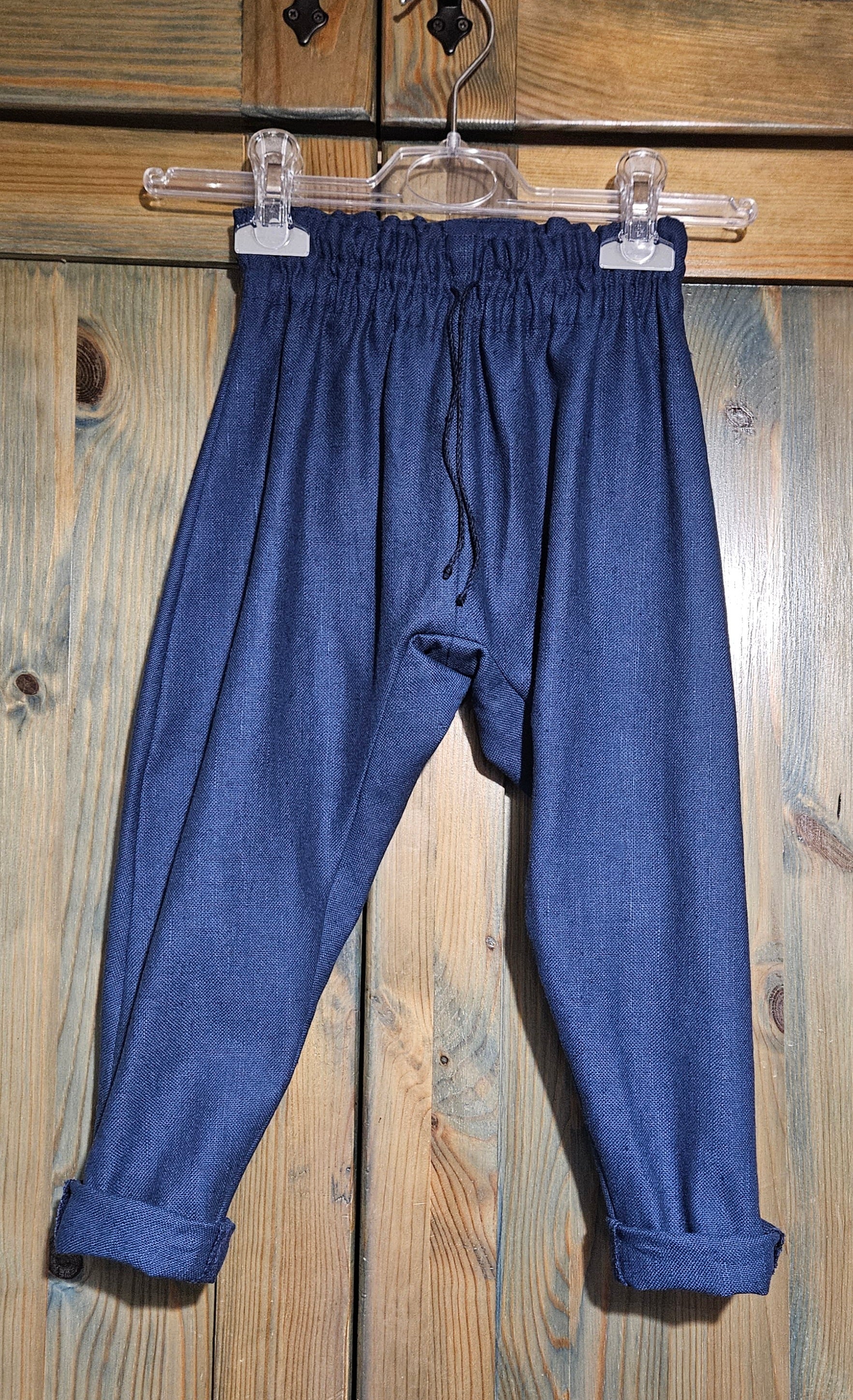 Zēnu lina bikses tumši zilas harēmtipa 80-98 izm