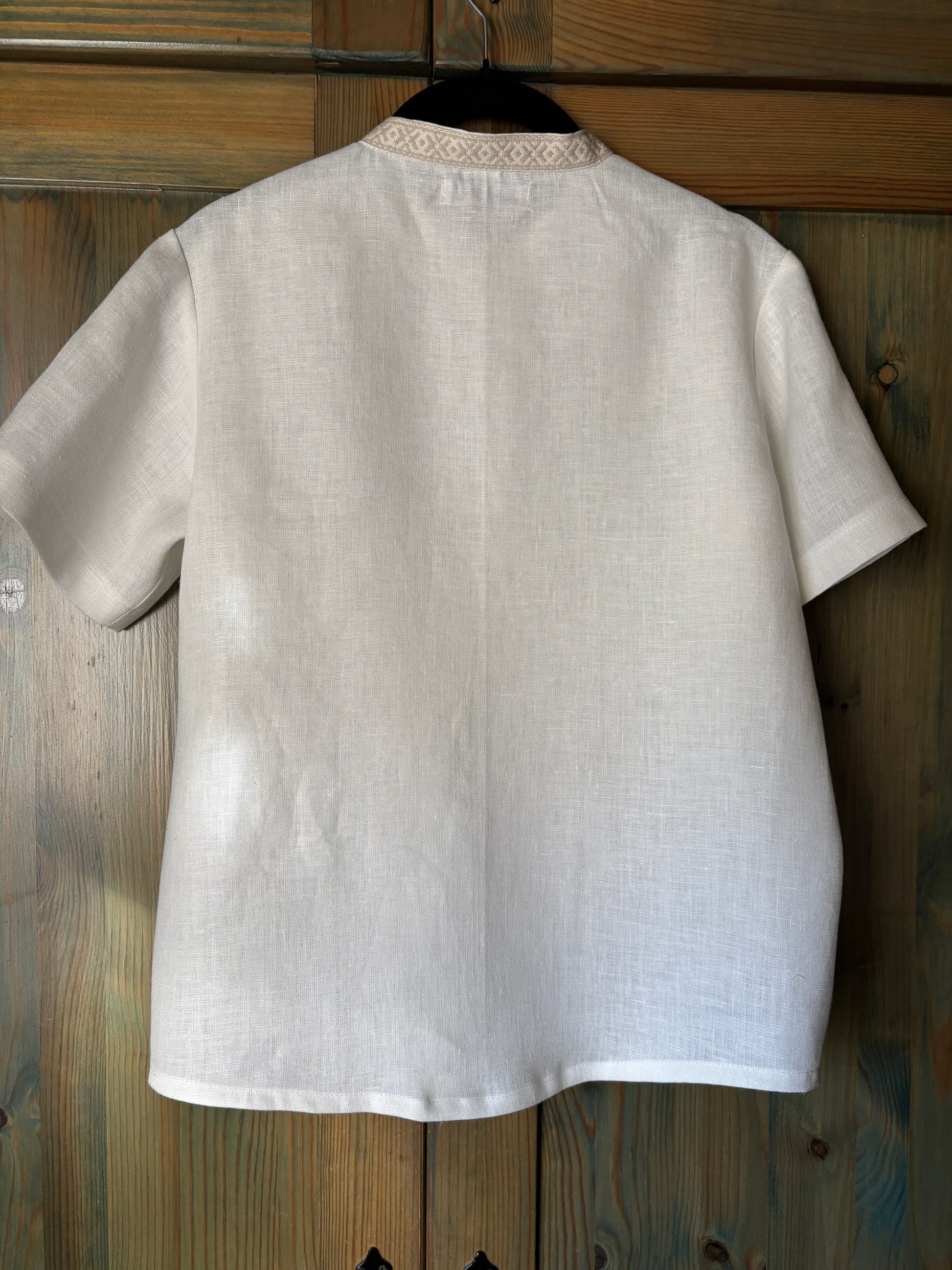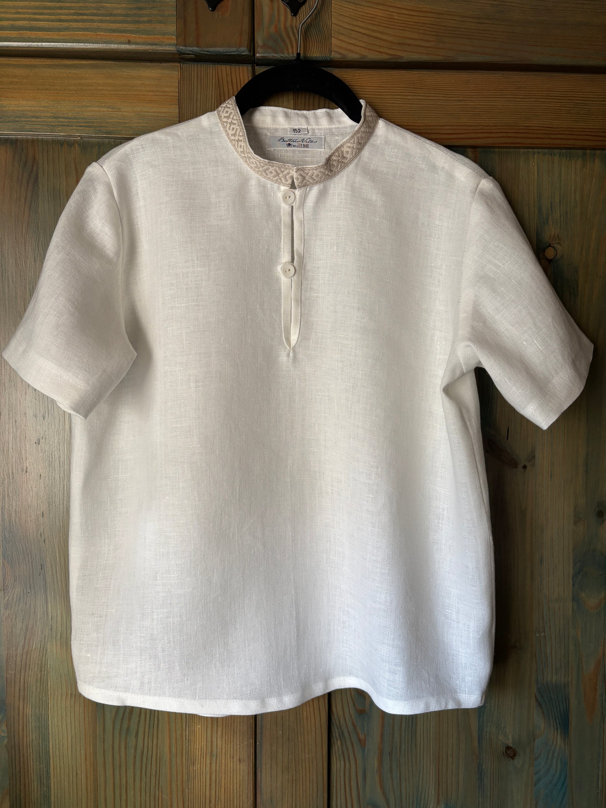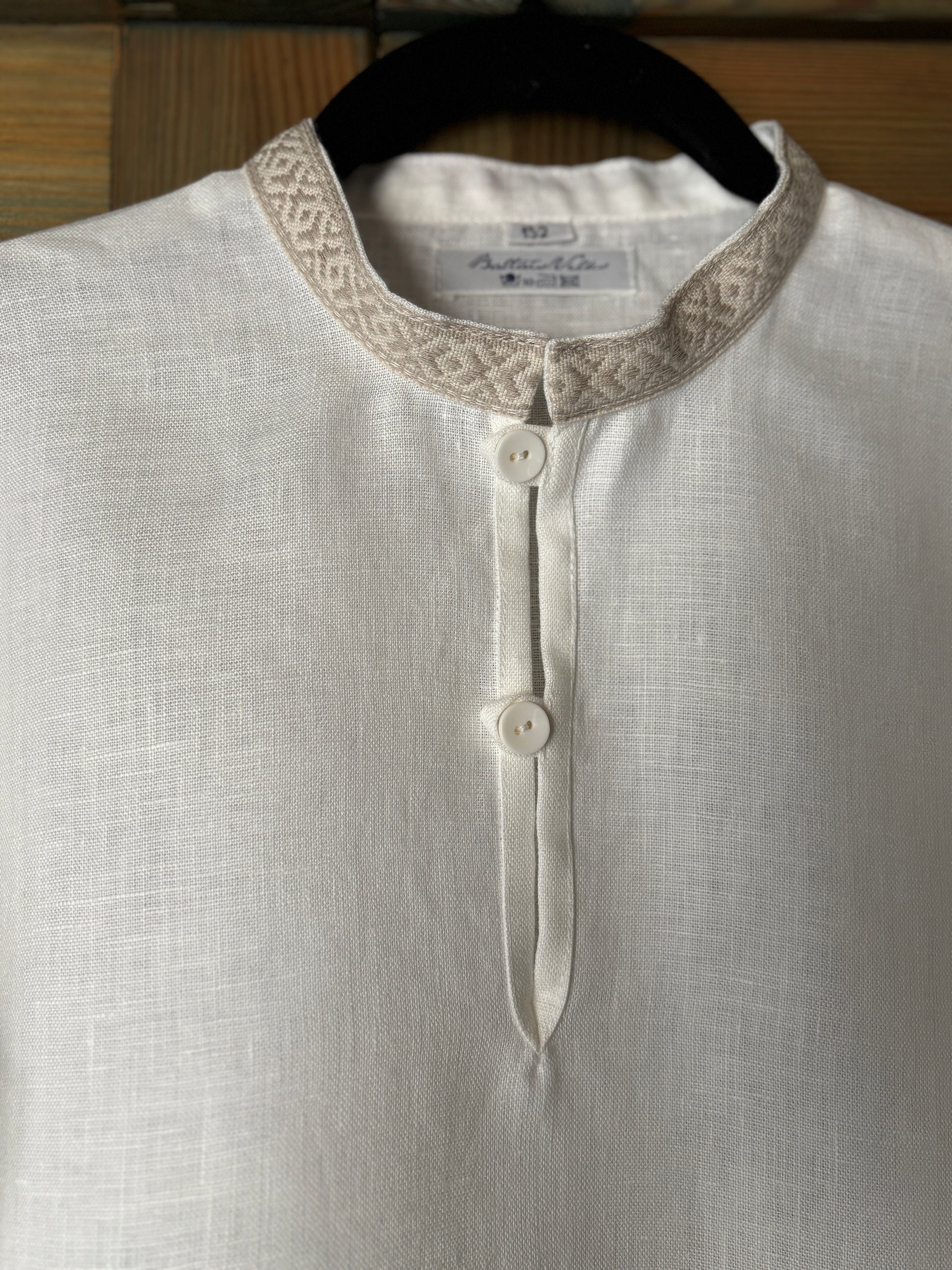 Zēnu lina krekls balts ar raksatinu krādziņu 140-152 izm