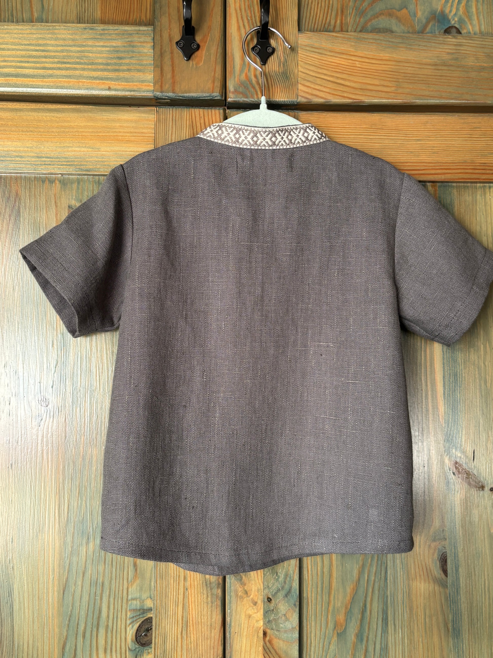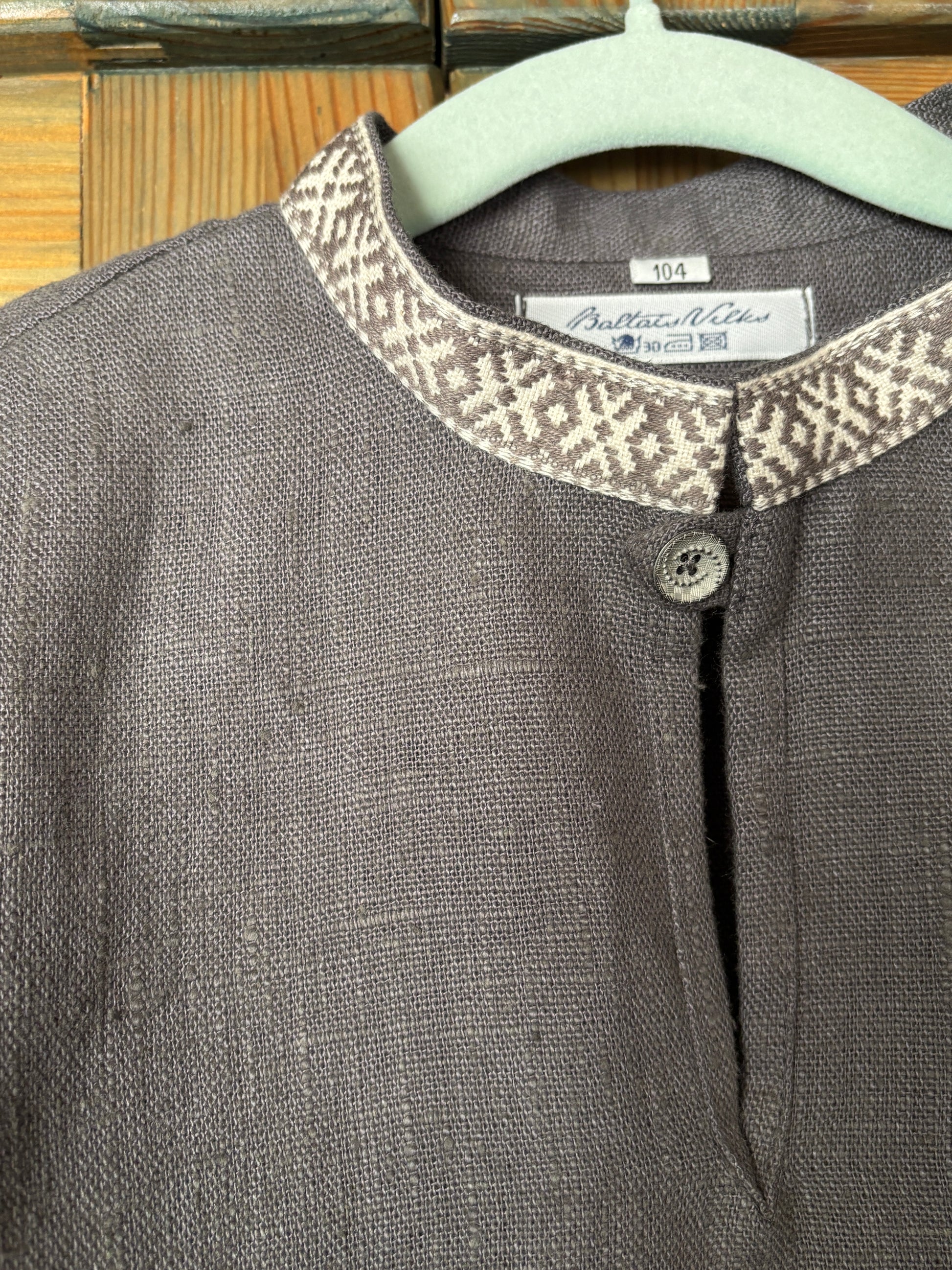 Zēnu lina krekls tumši pelēks ar rakstainu krādziņu 104 izm