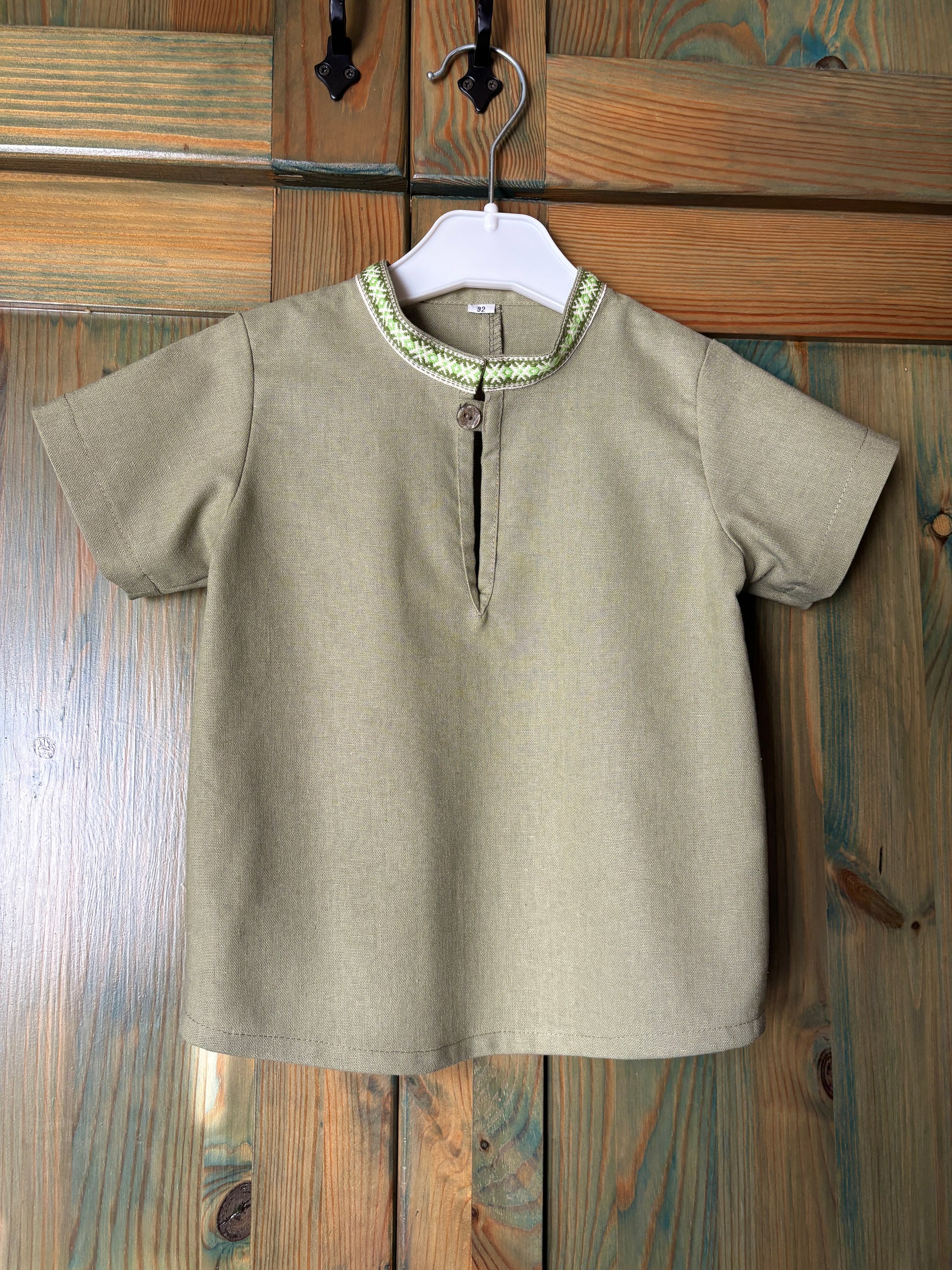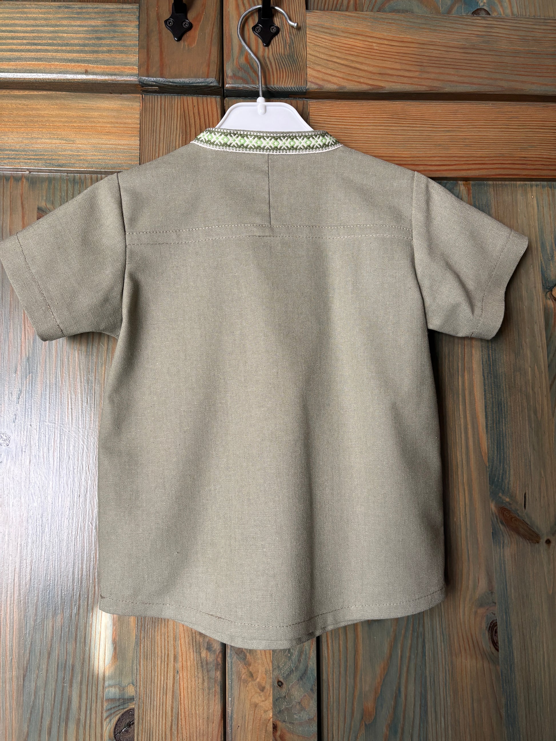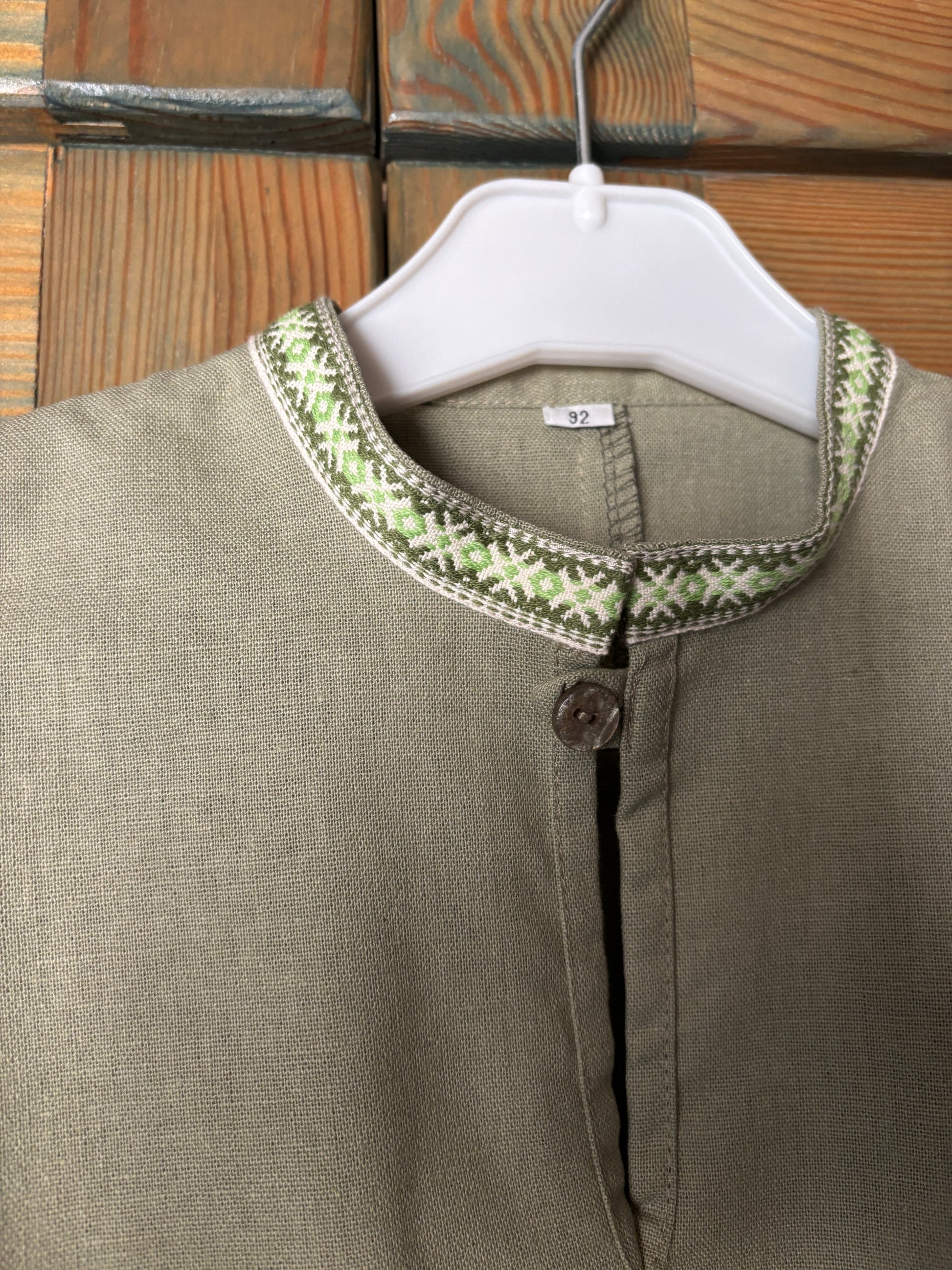 Zēnu lina krekls olīvzaļš ar rakstainu krādziņu 92 izm