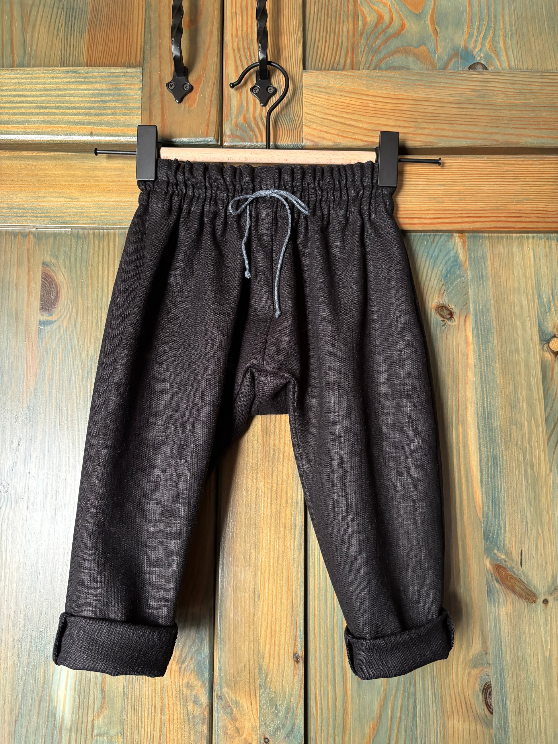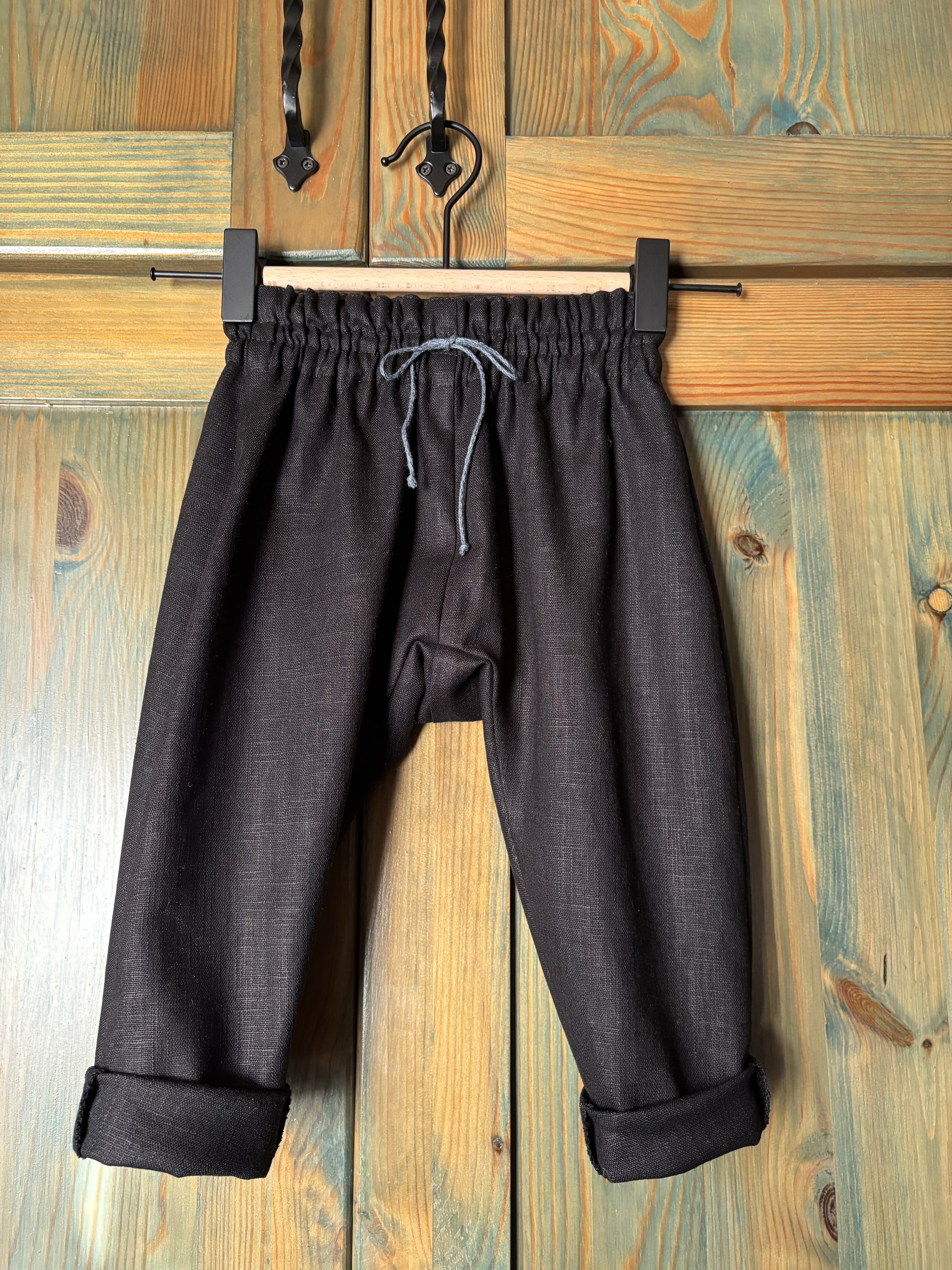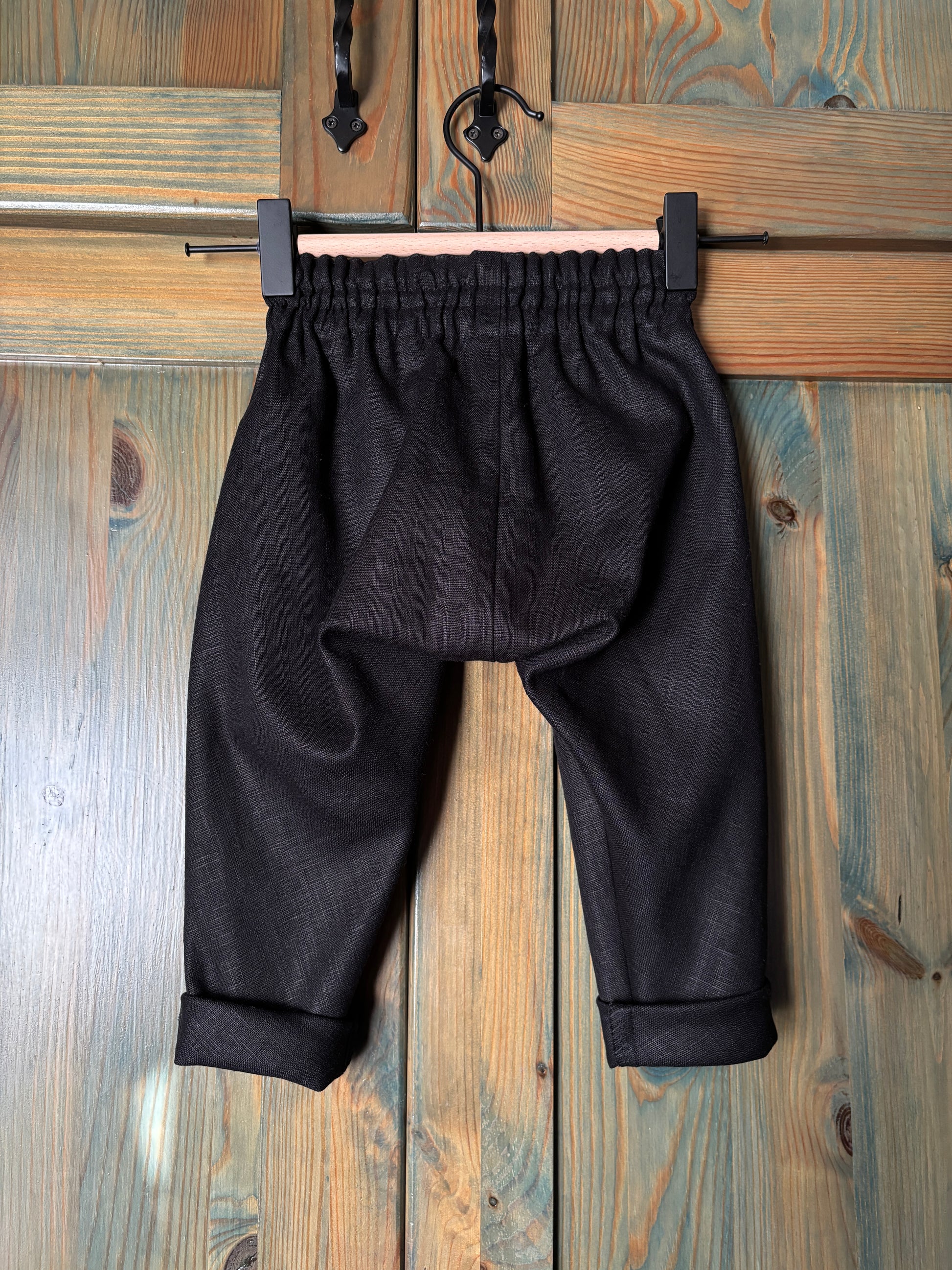 Zēnu lina bikses melnas harēmtipa 80 izm